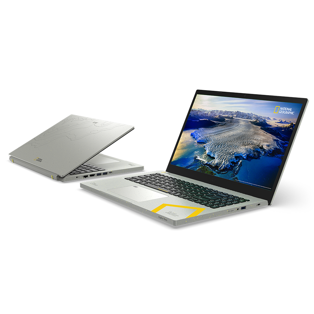 Acer Aspire National Geographic Edition utilizează 30% plastic PCR pe tot șasiul său, reducând astfel cu 21% emisiile de carbon pentru producția acestei piese. 30% din plastic PCR este, de asemenea, utilizat în cadrul ramelor ecranului și 50% pentru tastatură, reducând și mai mult amprenta computerului. Privind mai departe spre durata de viață a acestui model, s-a depus un efort deosebit pentru a simplifica procesul de reparații și upgrade-uri. Capacul inferior se desprinde prin 11 șuruburi standard cu cap Phillips, dezvăluind un set bine organizat de elemente interne care permite utilizatorilor să înlocuiască cu ușurință memoria RAM și SSD-ul.