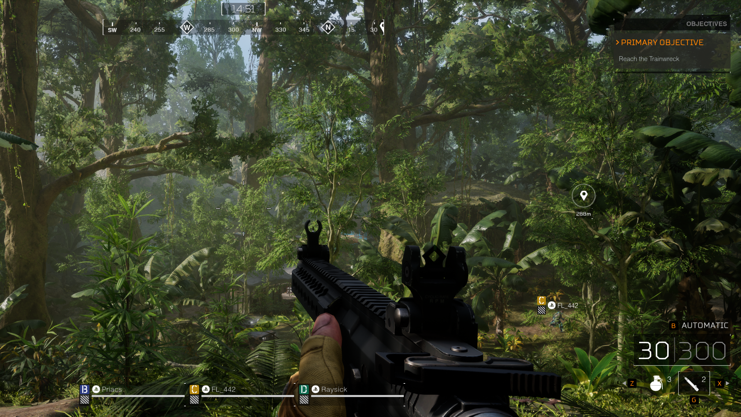 Primul lucru pe care-l vei observa este că Predator: Hunting Grounds nu se simte ca un joc premium, ci mai degrabă unul generic făcut de o echipă mică cu resurse limitate. Aici mă refer atât la aspectul jocului, cât și la modul în care personajul se mișcă sau la felul în care armele funcționează.