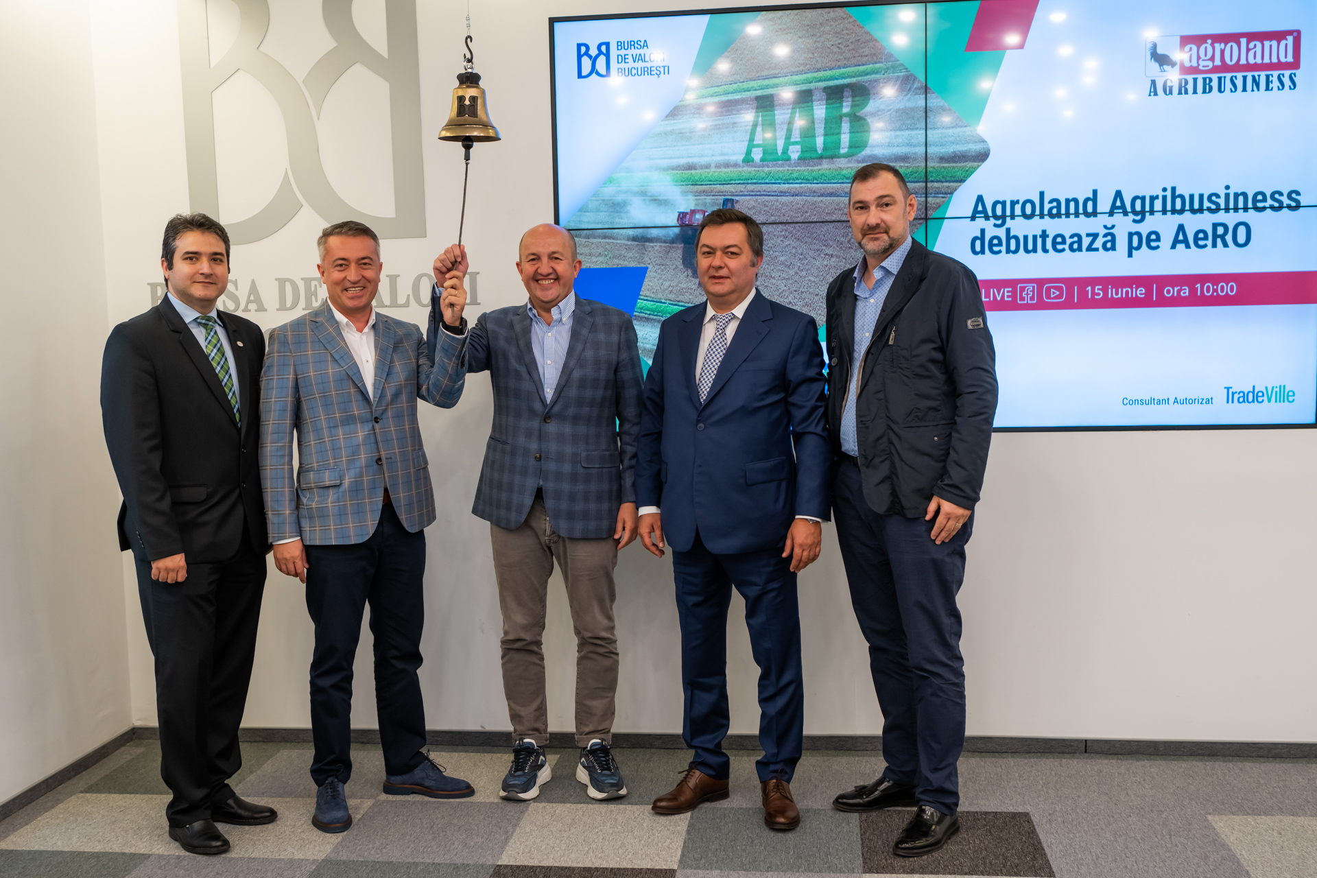 Agroland Agribusiness a debutat astăzi pe piața AeRO a Bursei de Valori București (BVB), după un plasament privat pentru vânzarea de acțiuni, prin care a strâns de la investitori 6,07 milioane de lei. Acțiunile companiei se tranzacționează sub simbolul bursier AAB. Fondurile atrase vor fi folosite pentru dezvoltarea companiei și finanțarea investițiilor în active fixe, a cheltuielilor curente, fuziuni, achiziții, precum și intrarea în acționariatul unor startup-uri din agricultură.