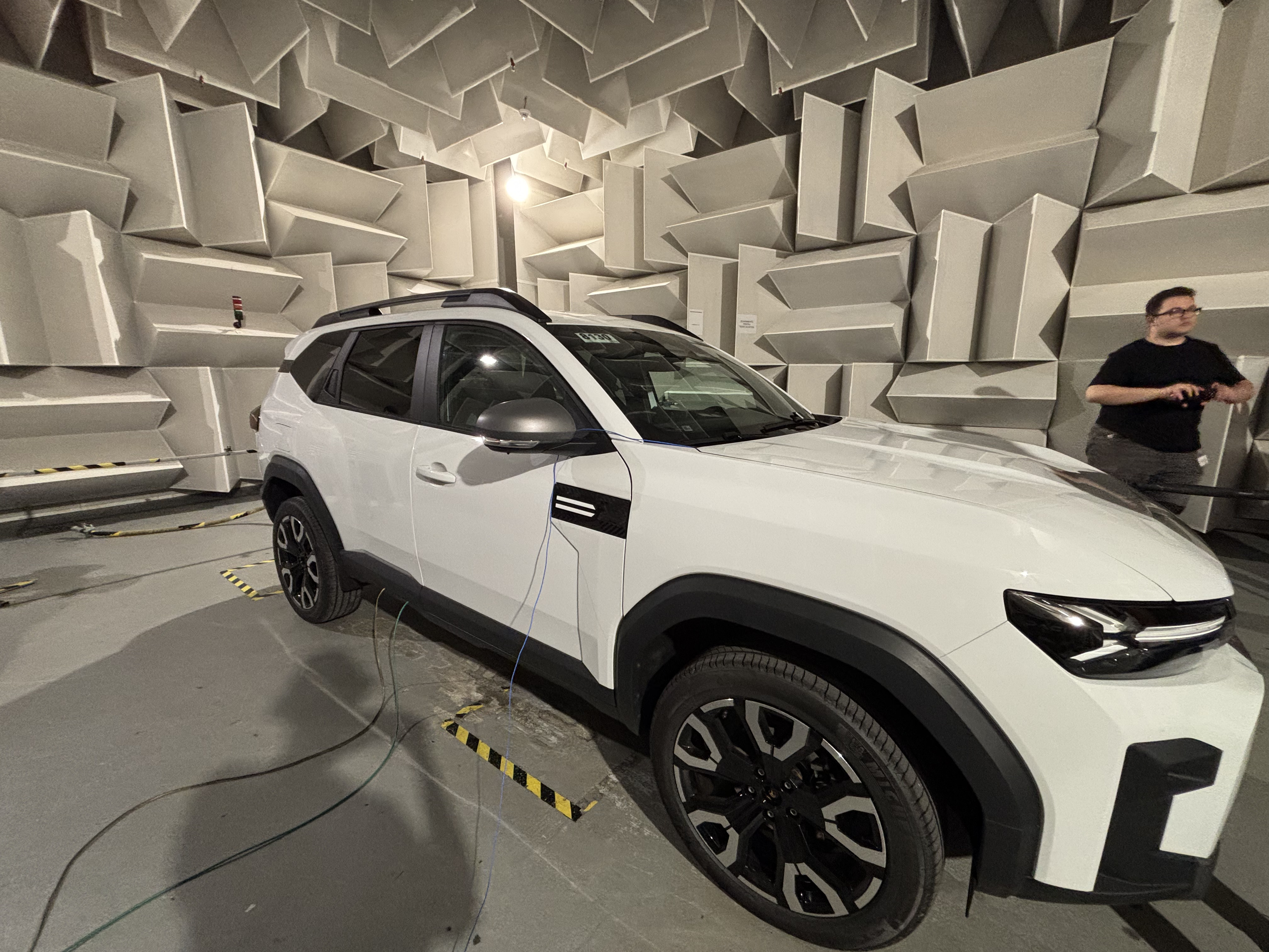 Camera semi-anecoică este o altă unitate de testare foarte importantă pentru confortul acustic al mașinii, pentru că acolo sunt duse modelele înainte ca ele să fie scoase pe pistele din exterior. Cu ajutorul microfoanelor speciale, inginerii Dacia-Renault analizează nivelul de zgomot perceput din exterior, cum ar fi din compartimentul motor sau de la eșapament, folosind difuzoare speciale. În camera semi-anecoică nivelul de zgomot este zero, de aceea senzația poate fi ușor apăsătoare, însă acest lucru este necesar pentru a optimiza insonorizarea mașinilor. Insonorizarea este importantă pentru că ea contribuie la un confort mai bun în mașină: practic nu vei auzi toate zgomotele din afară, cum ar fi sunetul anvelopelor sau zgomotul produs de motor, ci ele fie vor dispărea aproape complet, fie vor fi mai mult sau mai puțin atenuate.