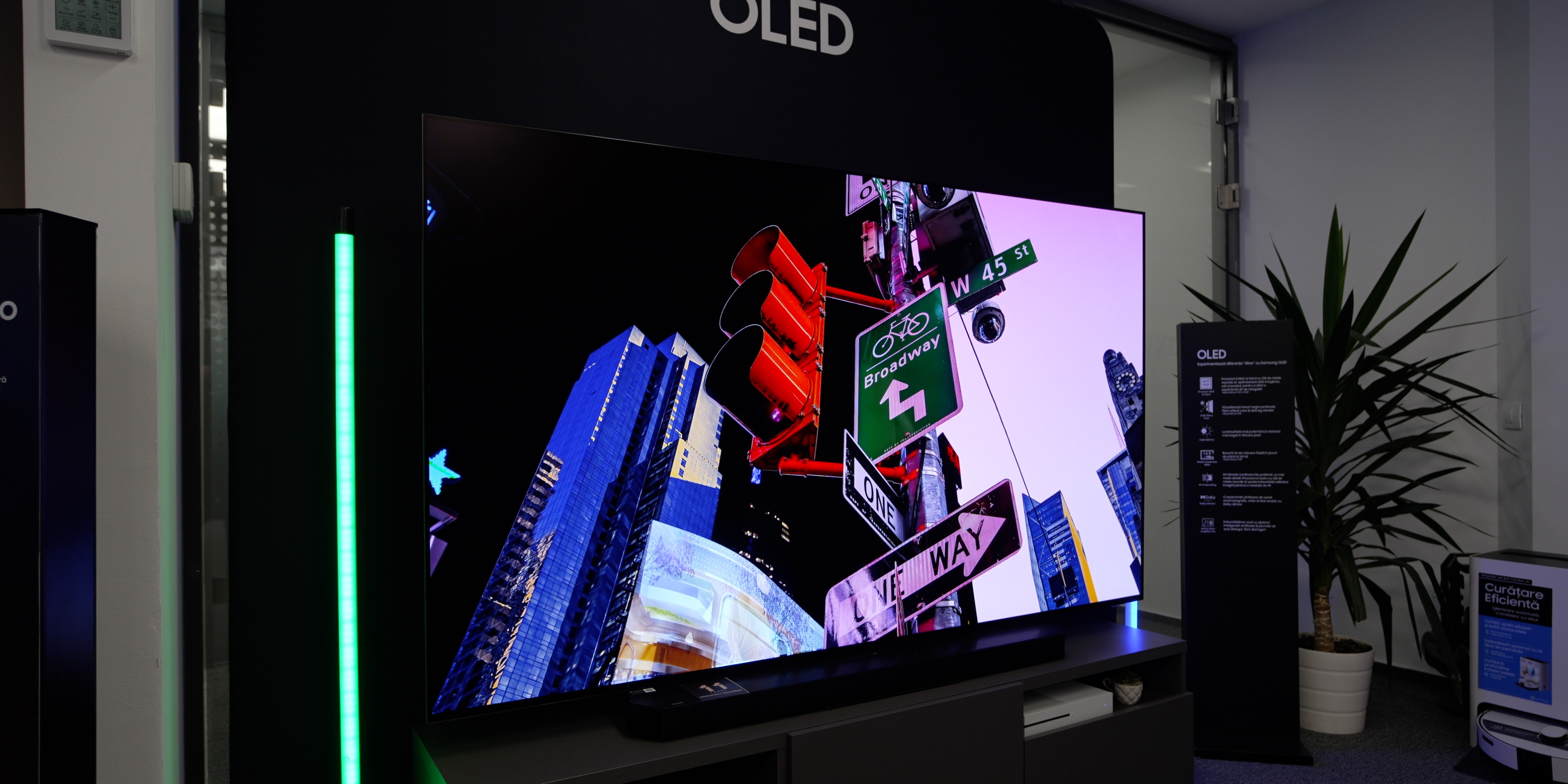 Din cea am văzut în imaginile demo, imaginea afișată de display-ul NEO QLED este excelentă cu culori aprinse, poate un pic cam mult pentru gustul meu, și cu multe detalii. E greu de judecat în acest mediu cât de bună e imaginea, dar la o primă vedere a impresionant, însă nu am putut să nu remarc puțin blooming când era doar text pe background negru, dar asta nu se întâmplă la modelul OLED.