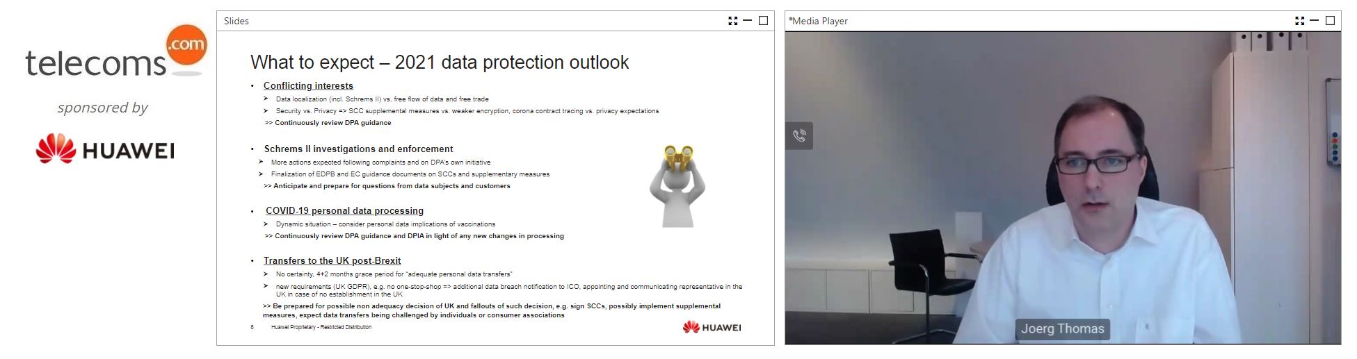 Joerg Thomas, director al Data Protection Office în cadrul Huawei a avertizat că e posibil să existe o creștere a proceselor intentate din cauza încălcării datelor GDPR. ”E posibil să asistăm la o creștere a numărului proceselor colective ce țin de datele personale în 2021-2022, având în vedere că persoanele afectate ar putea vedea procesele ca pe o cale bună de a fi desbăgubite atunci când li se încalcă drepturile datelor personale”, a declarat reprezentantul Huawei.
