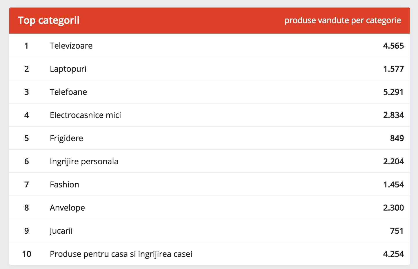 - Produse pentru casă și îngrijirea casei: 120.000 de bucăți