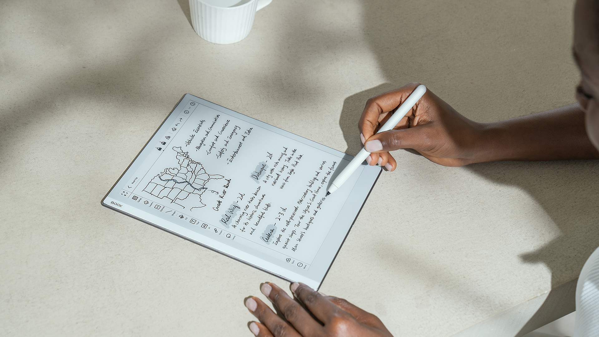 BOOX Go 10.3 iese în evidență ca o tabletă ePaper alb-negru ultrasubțire, măsurând doar 4,6 mm în grosime și cântărind doar 375 de grame. Acesta servește ca însoțitor de călătorie ideal pentru persoanele creative, având un afișaj Carta 1200 de 10,3 inch cu o rezoluție înaltă de 300 PPI pentru o experiență de lectură clară. Prin îndepărtarea stratului frontal de lumină, conținutul este prezentat mai aproape de ochi. În plus, tableta oferă diverse funcții de luare a notițelor, inclusiv instrumentul lasso și Smart Scribe, asigurând o experiență de scriere perfectă.
