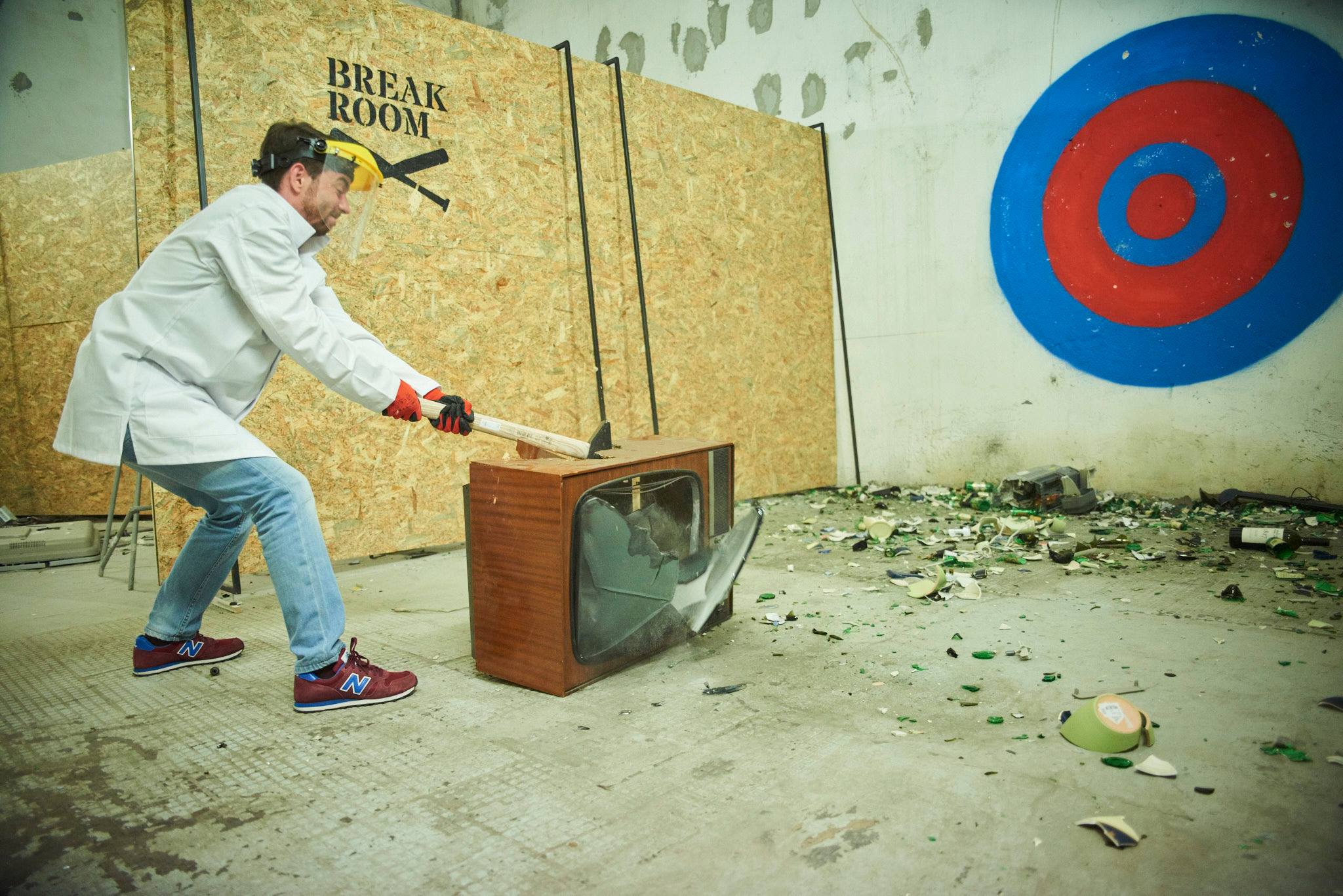 Însă Marius Neagoie, fondatorul Break Room, primul anger room din țara noastră, e convins că aceste două lucruri pot funcționa de minune împreună. De altfel, experiența sa ca arhitect l-a ajutat să aleagă spațiul potrivit pentru a fi în linie cu tema Break Room (primul anger room de la noi se află pe o platformă industrială). ”E un spațiu industrial unde distrugerea se face fără consecințe, în mediu controlat și în siguranță”, ne spune tânărul.