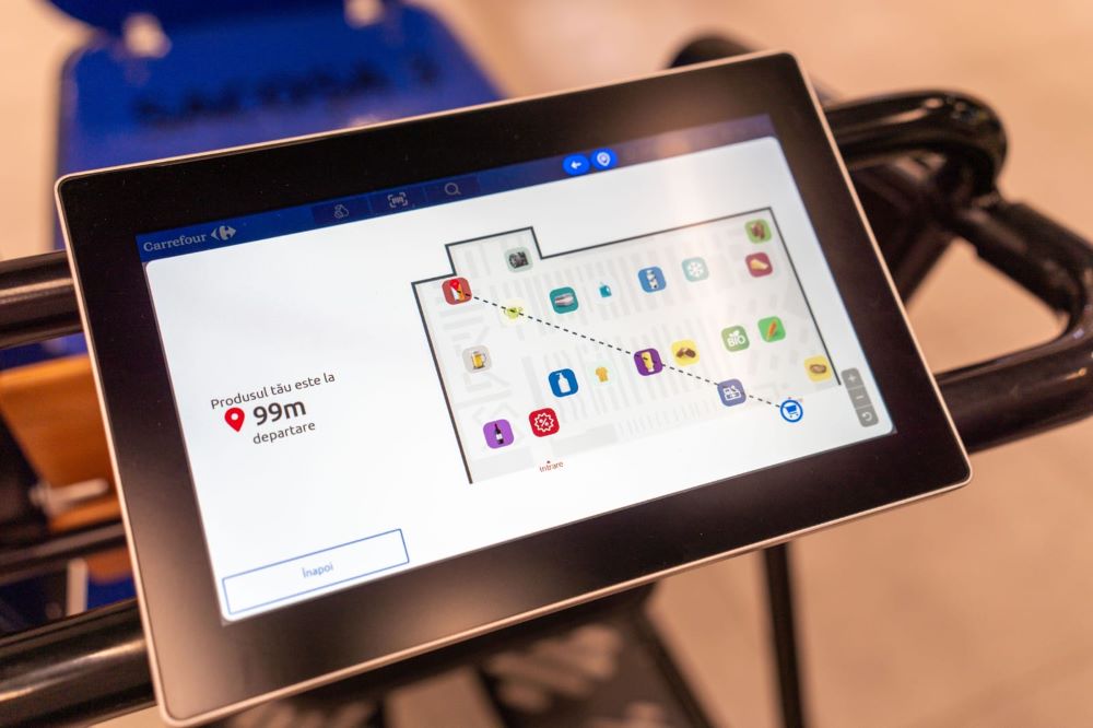 Carrefour România introduce, în premieră națională, Smart Cart, primul sistem de cărucioare inteligente din România. Disponibil exclusiv în hipermarketul din Corbeanca, Smart Cart funcționează precum un asistent de cumpărături integrat, care optimizează traseul în magazin, afișează produsele disponibile în magazin și valoarea coșului de cumpărături în timp real.