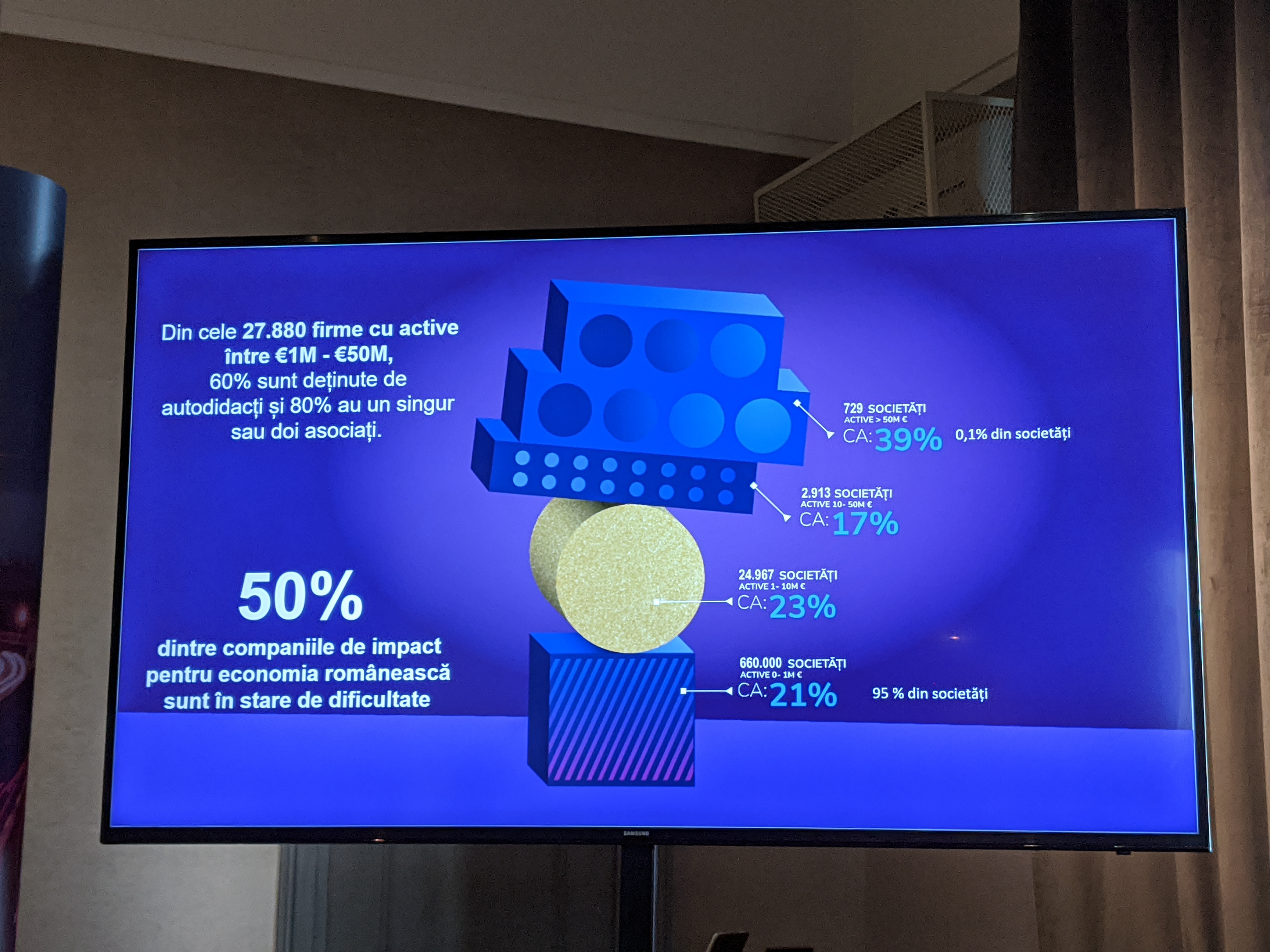”50% din companiile de impact, adică au active de peste 1 mil. de euro, pentru economia românească sunt în stare de dificultate”, spune Cionca.