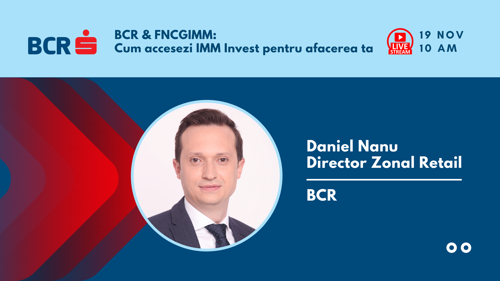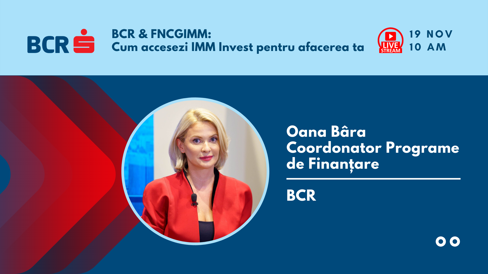 De asemenea, în panel va fi invitat și un antreprenor care a colaborat cu BCR pentru obținerea finanțărilor din programul guvernamental IMM Invest.