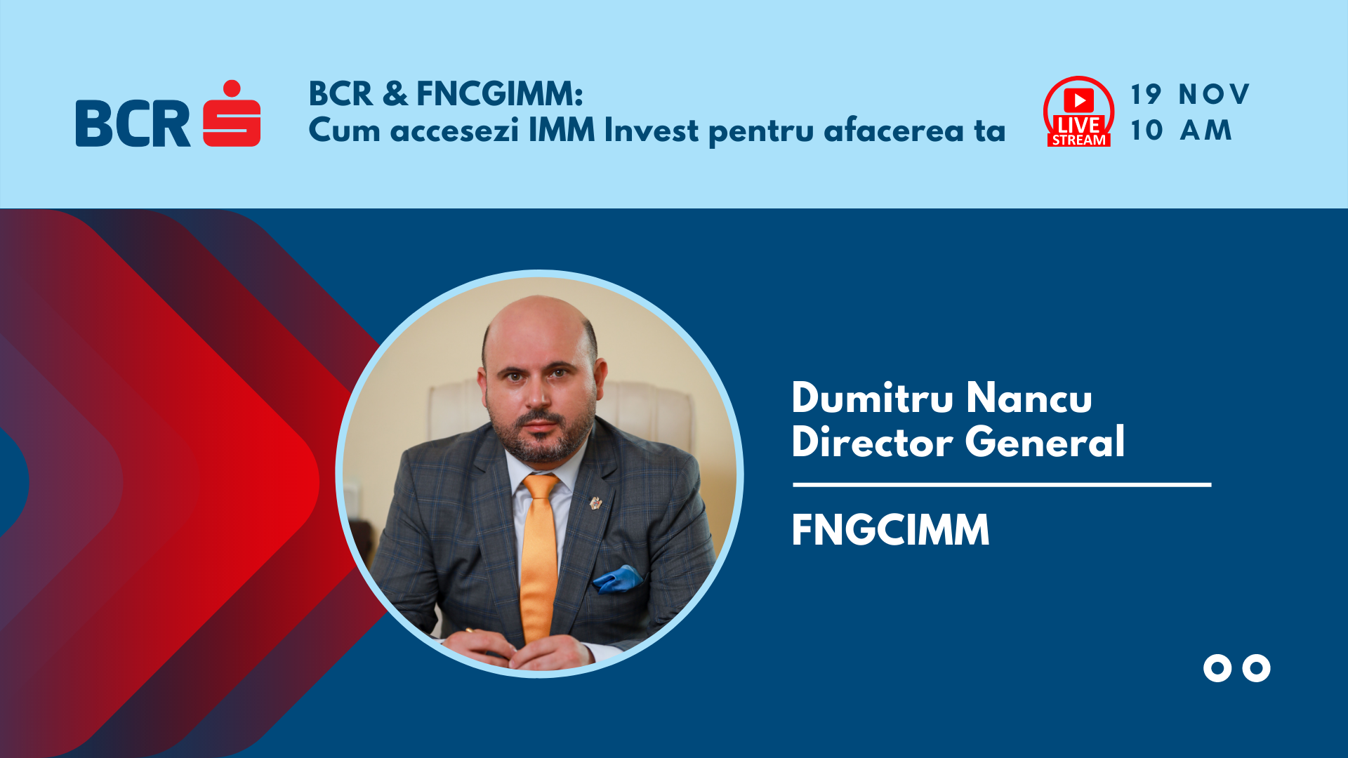 Conferința BCR & FNCGIMM: Cum accesezi IMM Invest pentru afacerea ta îți oferă răspuns la întrebările pe care le poți avea pentru accesarea programelor guvernamentale de susținere a antreprenoriatului.