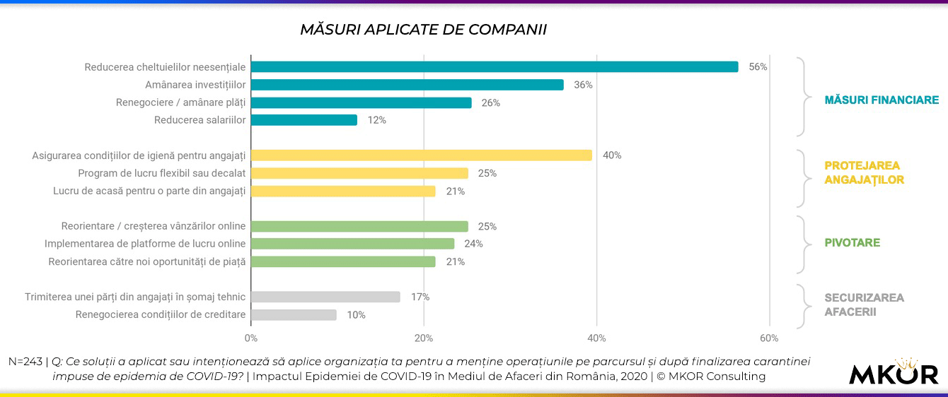 95% dintre companii au luat măsuri pentru a supraviețui crizei provocate de COVID-19, iar 90% au luat măsurile imediat după începerea situației de urgență.