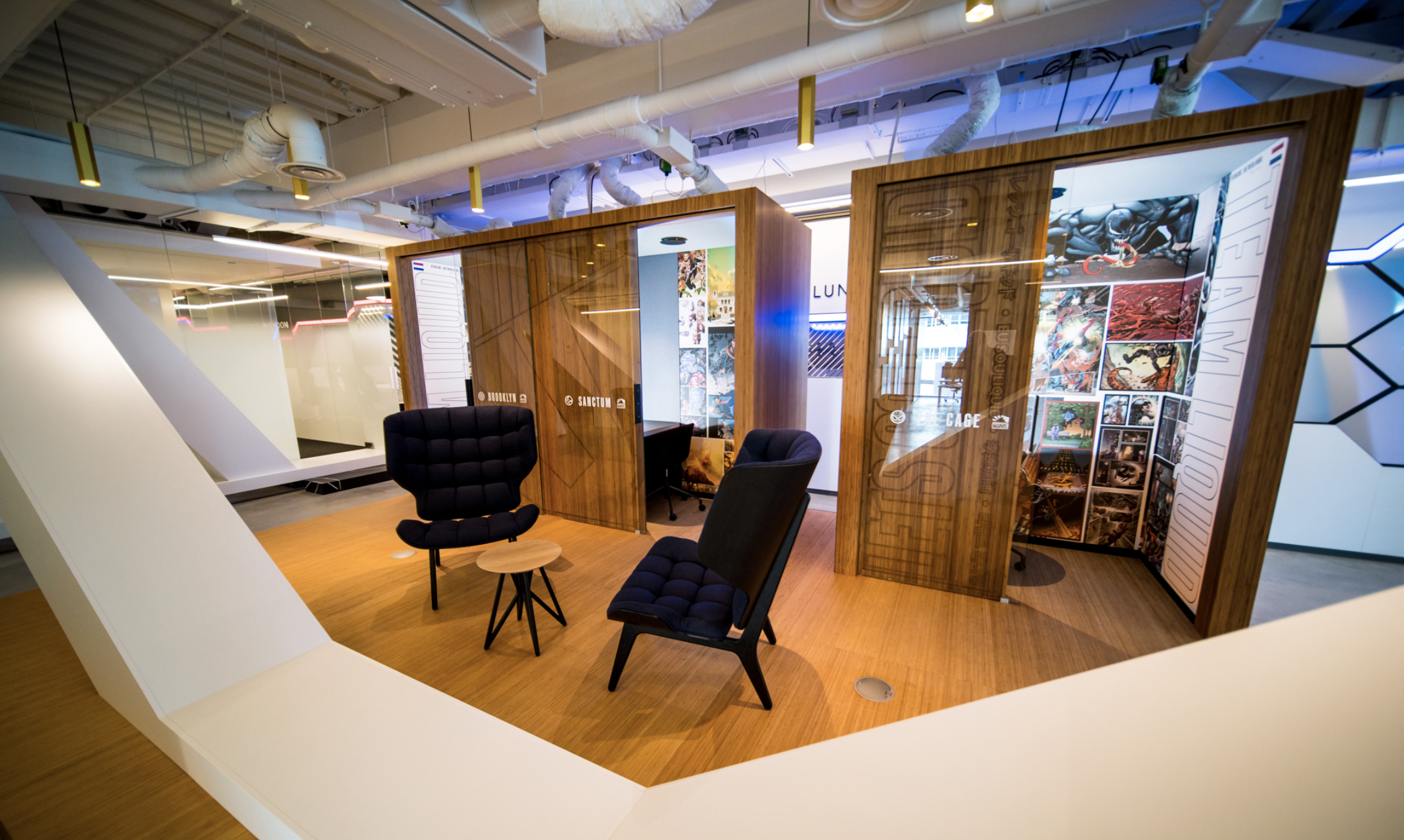 Construit pe o suprafață de 1060 m2, centrul echipat cu tehnologie de ultimă oră a fost gândit de la zero, cu scopul a asigura un mediu sănătos și sustenabil pentru antrenamentele de sporturi online, performanță și o stare generală de bine. Printre altele, clădirea este prevăzută cu zone multiple create special pentru jucători, personal și comunitate, inclusiv: