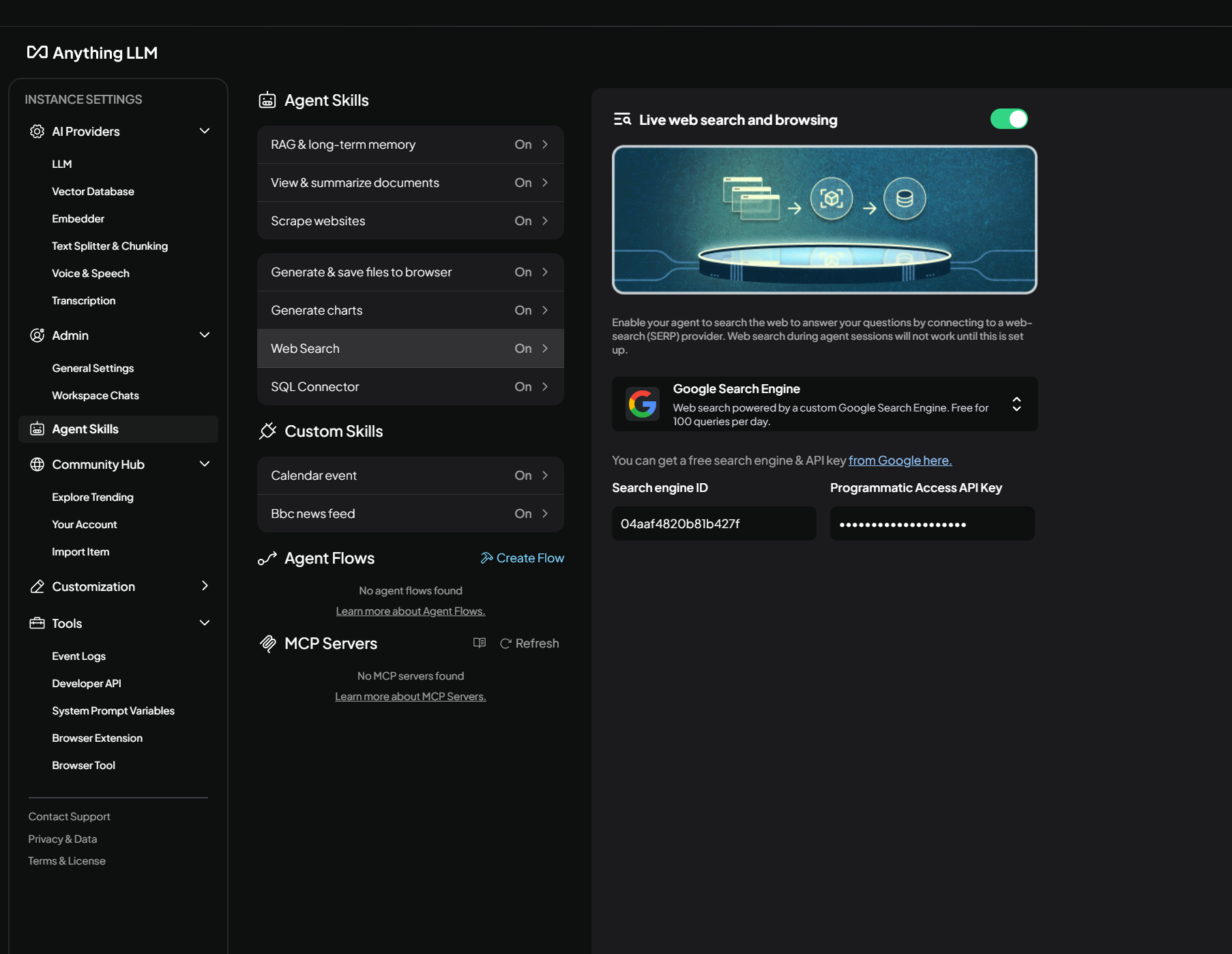 - Calendar Event și BBC News Feed (descărcate din Community Hub-ul AnythingLLM).