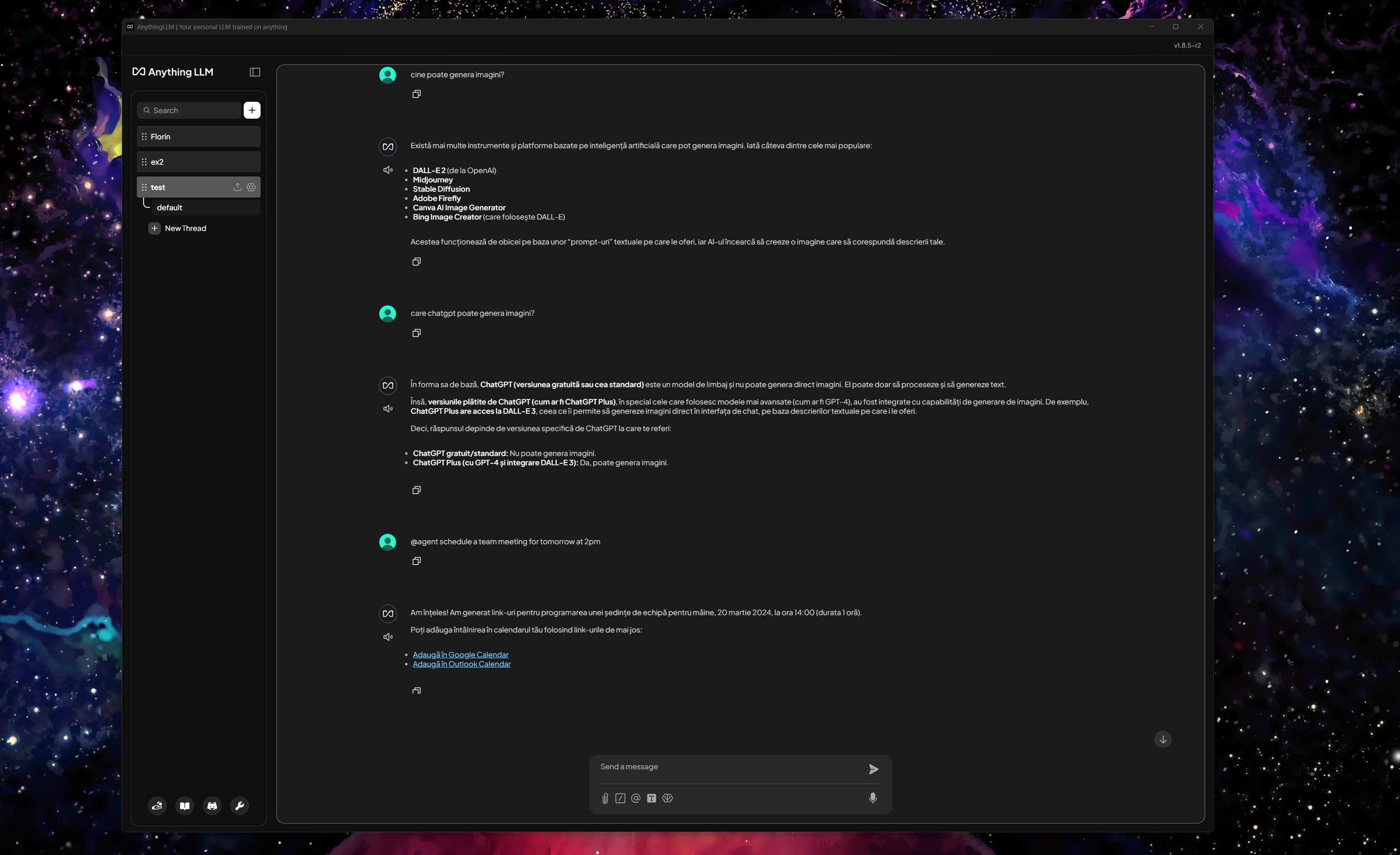 Eu nu am făcut nimic complicat cu agentul AI și m-am folosit de skillurile create de comunitatea AnythingLLM pentru a ruga AI-ul să-mi adauge meetinguri în calendarul Google sau pentru a îmi afișa cele mai recente știri de pe site-ul BBC.