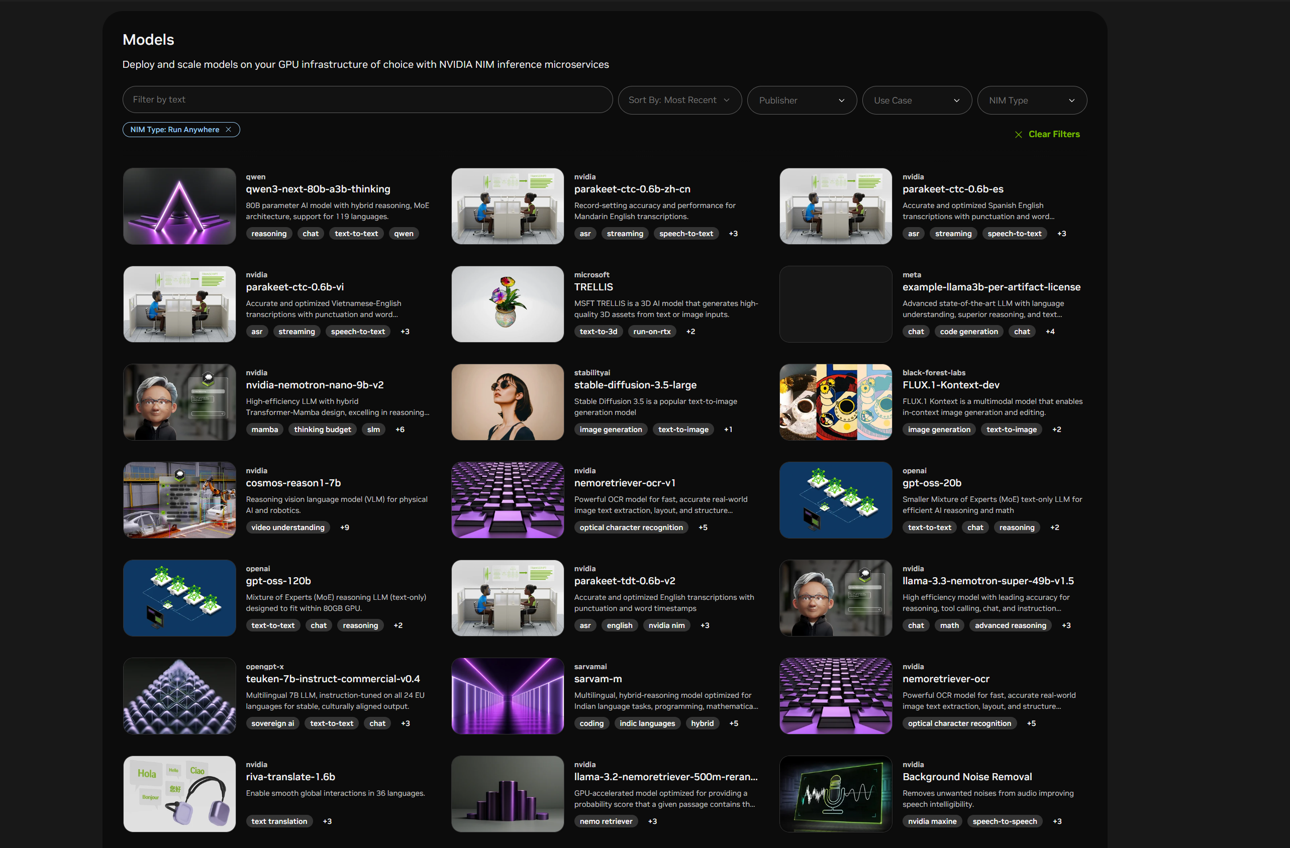 Odată ce instalatorul este finalizat, poți importa NIM-uri de la Nvidia. Modelele disponibile includ versiuni complete (fără cuantificare sau compresie) ale LLM-urilor populare, cum ar fi Llama 3.1 8B și DeepSeek R1 llama 8B distillation.