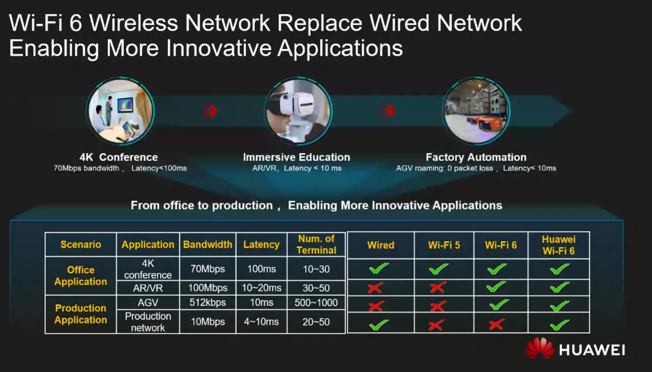Pentru a demonstra capabilitățile unei asemenea rețele wireless. Cei de la Huawei au dat exemplul felul în care aceasta este folosită în campusul din Dongguan. Acolo, Huawei are peste 25.000 de angajați și 200.000 de metri pătrați de laboratoare. Din campusul Dongguan se trimit zilnic 2,8 milioane de emailuri și peste 600 de aplicații rulează pe rețea.
