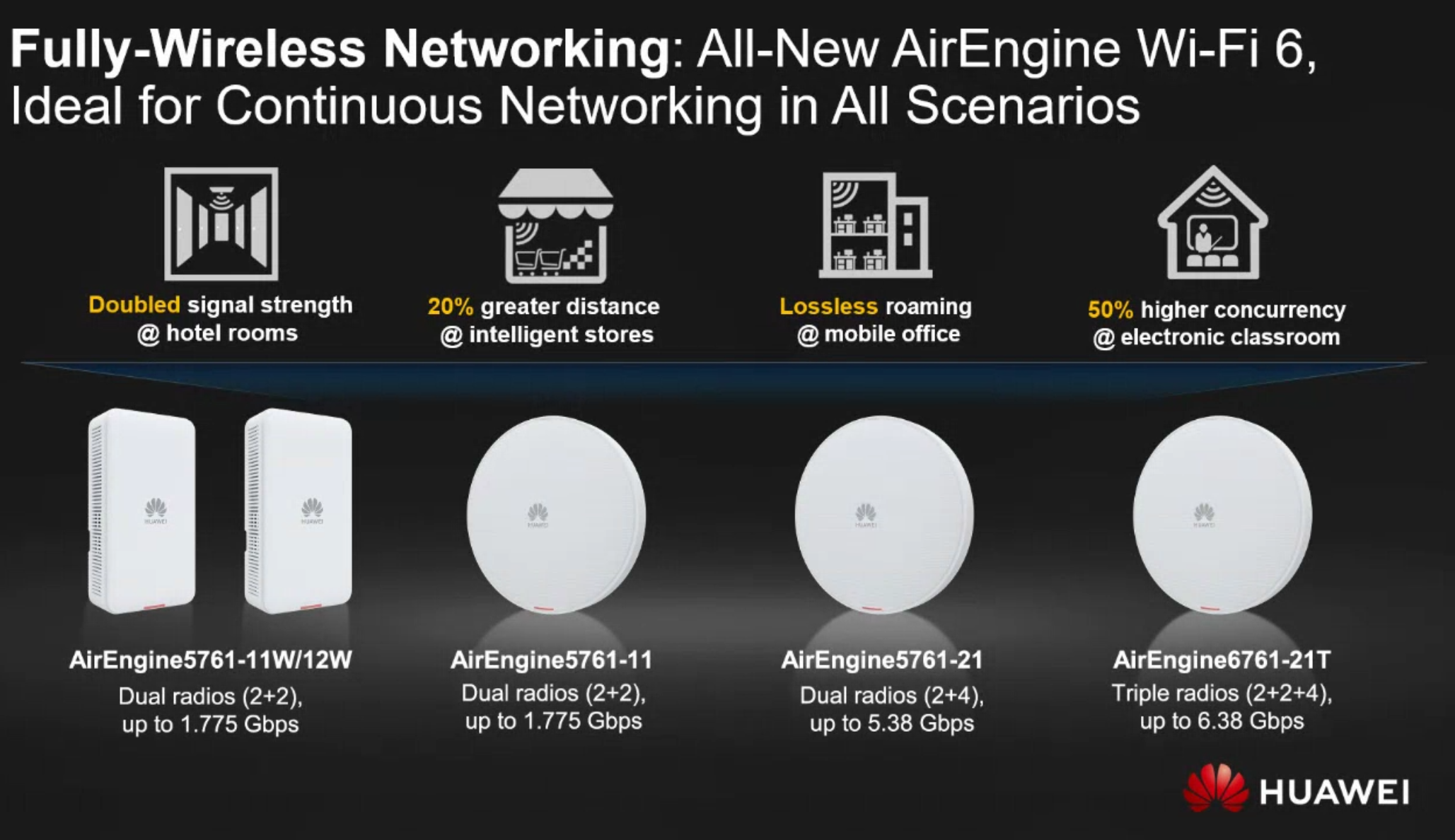 Gledrojc a mai spus că Huawei are 20 de astfel de acces point-uri destinate pentru diferite scenarii de utilizare (densitate mare în hoteluri, lossless roaming în birouri sau acoperirea unei distanțe mari în magazine, outdoor sau indoor).