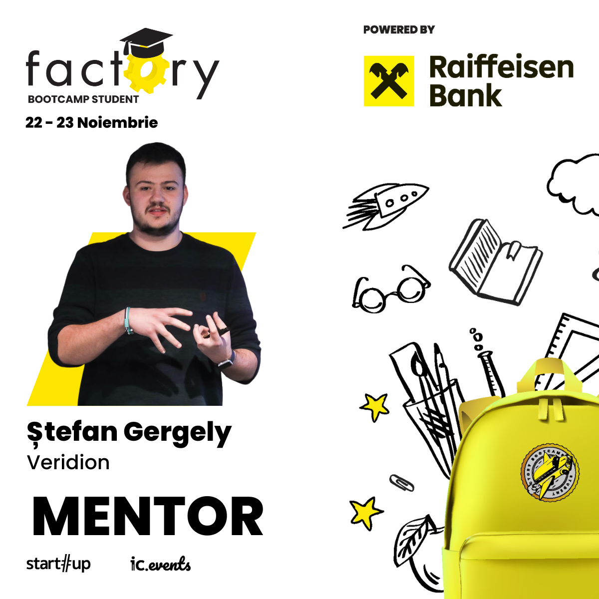 Ștefan Gergely este Head of Growth în cadrul Veridion (fostul Soleadify), un startup care folosește machine learning pentru a înțelege, săptămânal, 700 de miliarde de pagini web cu scopul de a construi și menține o bază de date cu 80 de milioane de întreprinderi din întreaga lume.