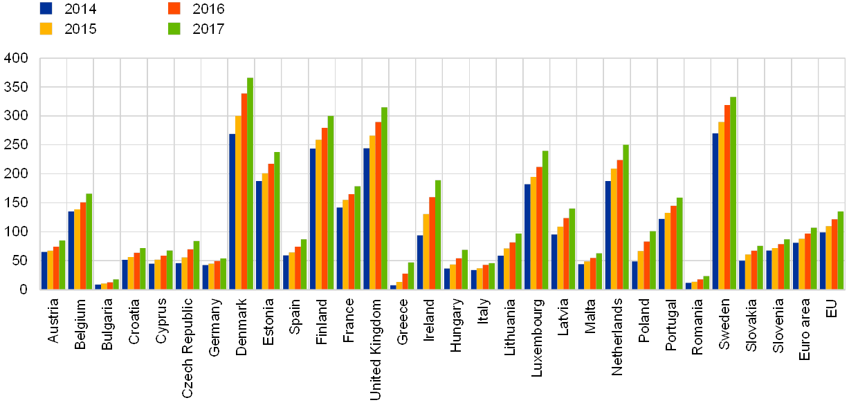 Tabel 1: Numărul de plăți cu cardul pe cap de locuitor (2014 - 2017)