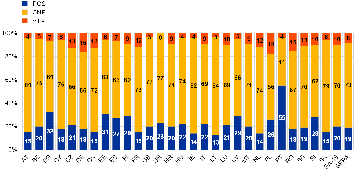 Al cincilea raport privind frauda cu carduri emis de Banca Centrală Europeană arată că România are cea mai scăzută rată de penetrare a cardurilor din Uniunea Europeană, cu 0.81 carduri pe cap de locuitor, în comparație cu media SEPA de 1.53 carduri pe cap de locuitor. De asemenea, România ocupă penultimul loc din perspectiva utilizării cardurilor, după Bulgaria, cu o medie de 28 de tranzacții pe cap de locuitor pe an, un număr semnificativ mai mic în comparație cu media SEPA de 129 de tranzacții pe cap de locuitor anual .