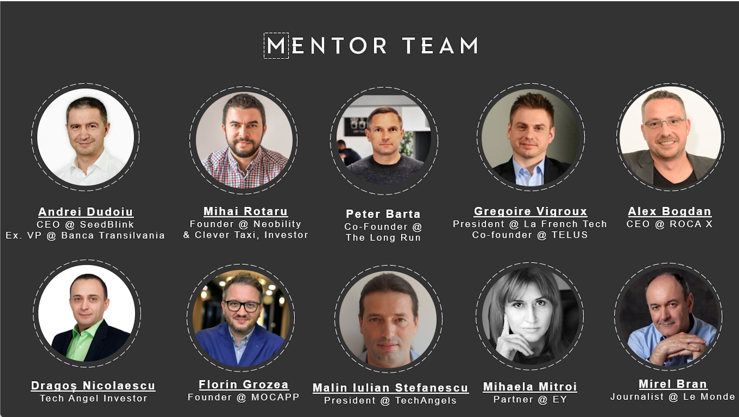 Participanții vor primi îndrumare din partea a peste 30 de mentori de top, care au răspuns pozitiv misiunii de a educa o nouă generație de antreprenori pentru România. Printre primii care au confirmat implicarea lor se află Gregoire Vigreux, președinte La French Tech, Philip Choban, fondator Telios, Florin Grozea, fondator Mocapp, Andrei Dudoiu, fondator Seedblink, Cristina Daianu, Coordonator al Ariei de Practică VentureTech din Bucureşti, Dentons, Cristian Negrutiu, CEO Sparking Capital, Alexandru Bogdan, CEO Roca X sau Daniela Șerban, fondator ARIR.
