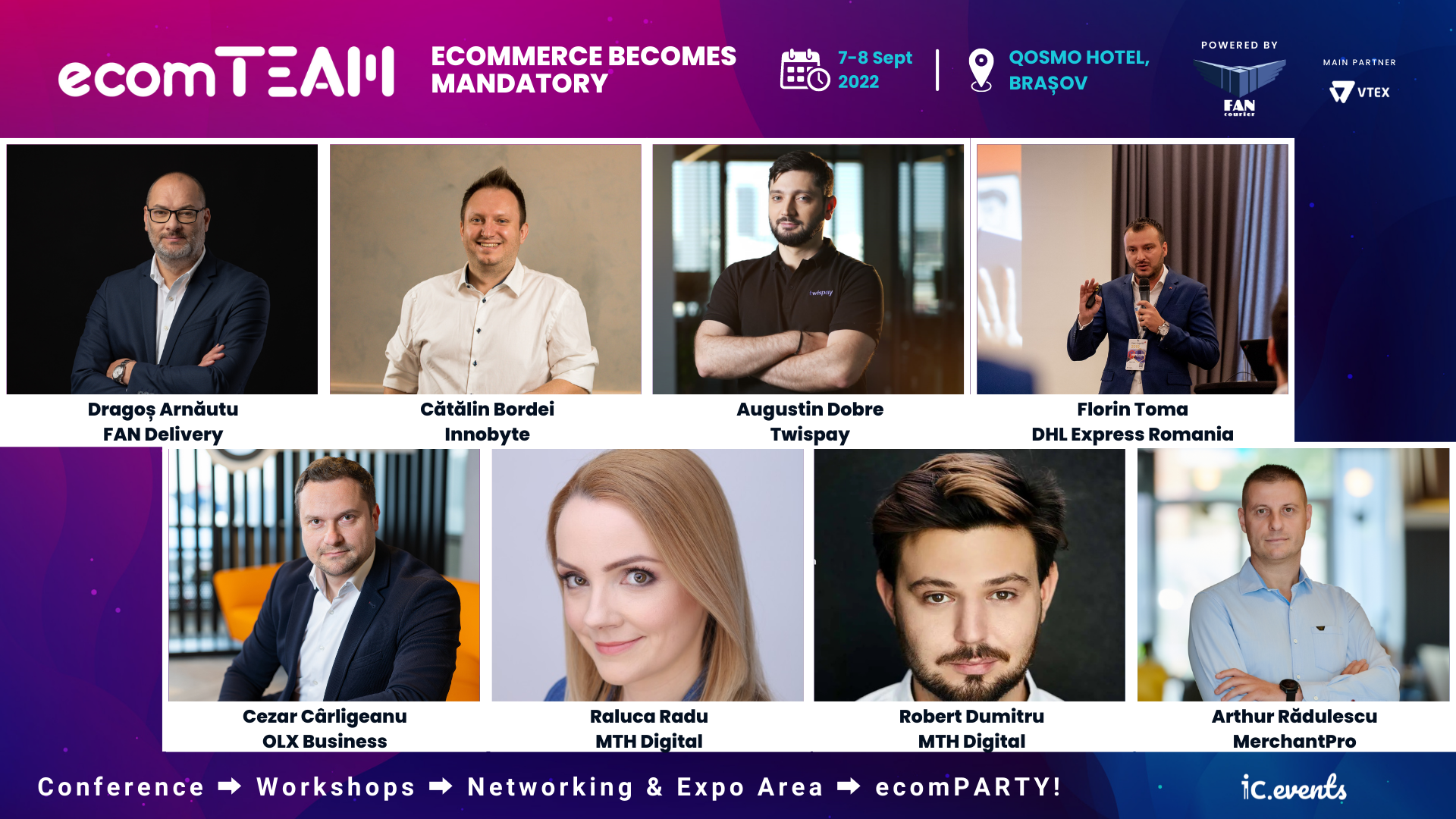 Reprezentanți ai unora dintre cei mai importanți retaileri online și offline, companii de tehnologie, jucători din piața de curierat și logistică sau agenții de digital marketing, cu toții vor transforma cele două zile de eveniment într-un maraton de e-commerce și networking.