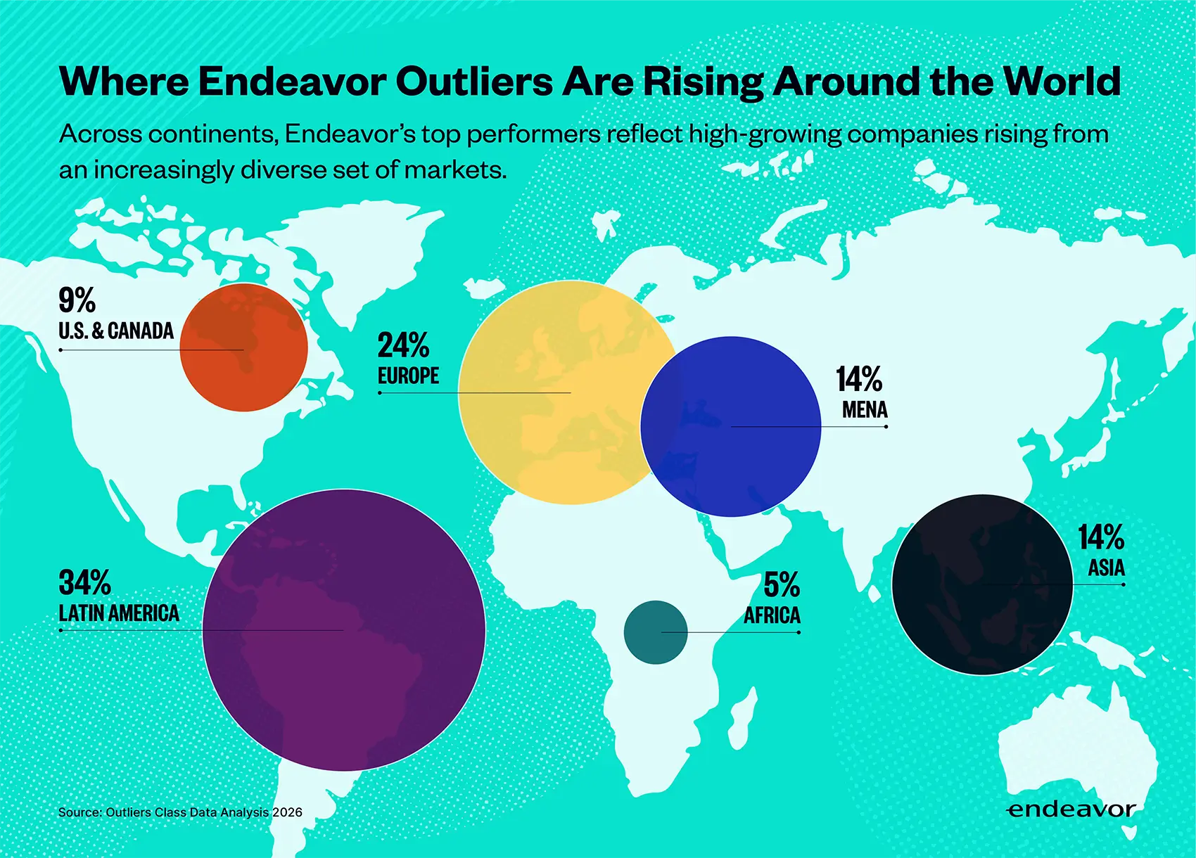 Din Endeavor Outliers 2026 reiese că marile companii globale nu mai sunt construite doar în marile hub-uri tech, ci piețele emergente devin surse reale de inovație.