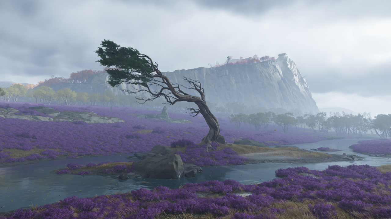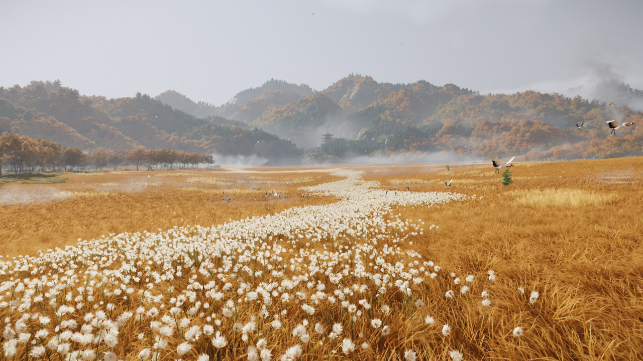 - Distanța de randare (Draw Distance): În loc să deseneze toate detaliile la infinit, asseturile se estompează la un anumit nivel, iar un rendering mesh creează iluzia de valuri care se mișcă la nesfârșit pe teren atunci când vântul suflă prin iarbă.