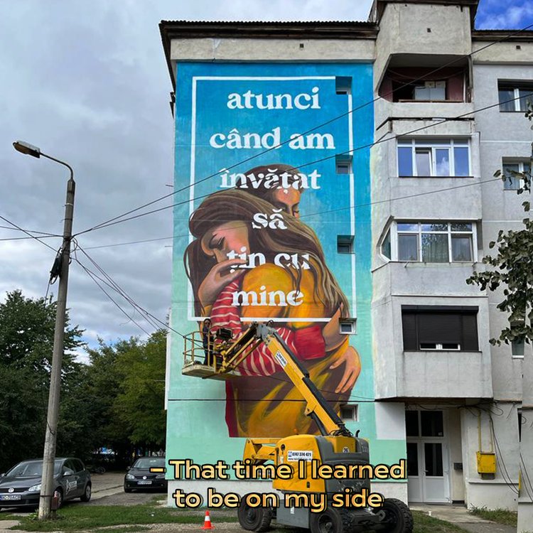 - Chestionar despre Wanda Hutira, care a simțit că trebuie să ducă mesajele despre echilibru emoțional la un nivel cât mai înalt și mai vizibil, astfel că l-a pus pe muralele din puncte cheie din țară.