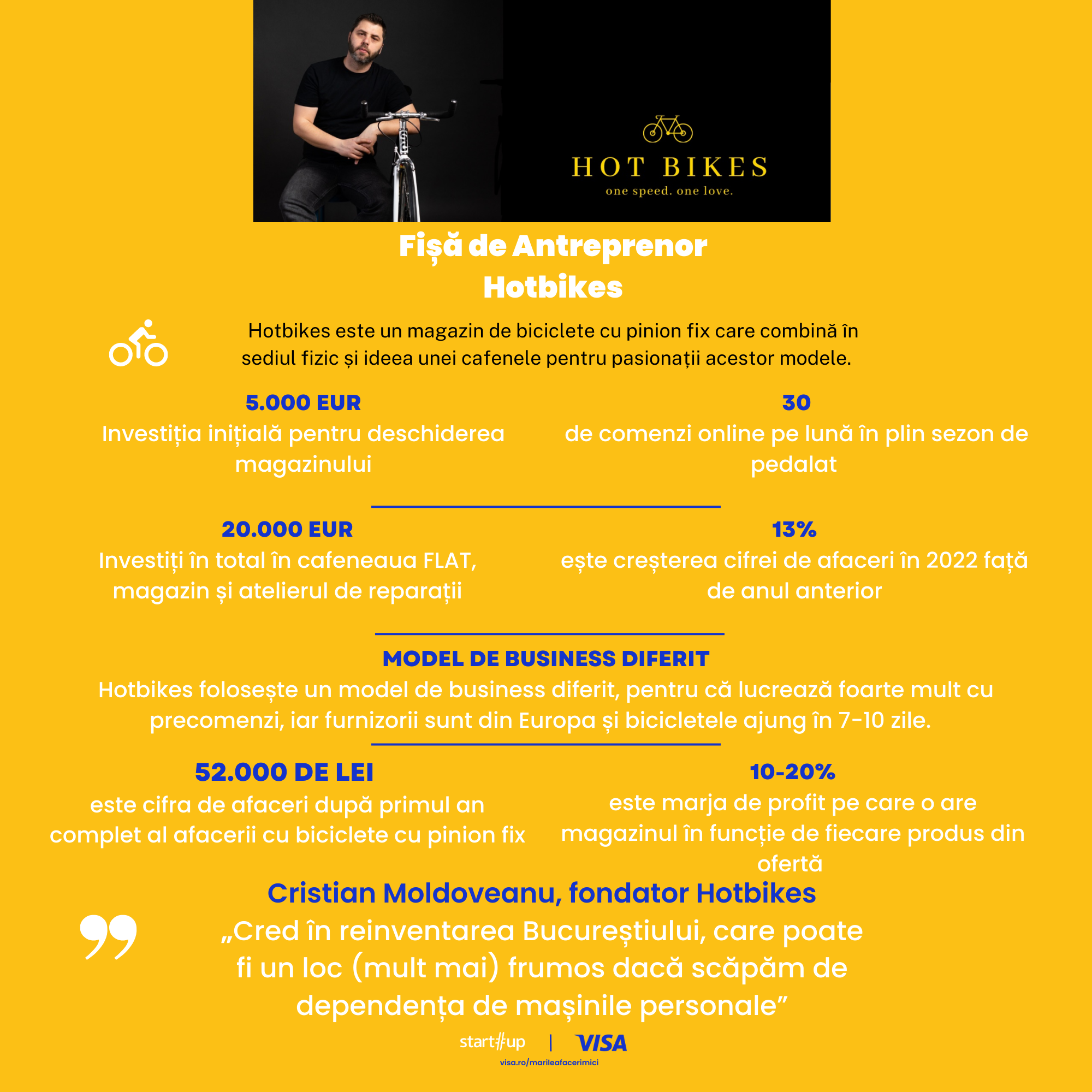 Cristian Moldoveanu, fondatorul Hotbikes, este un exemplu perfect pentru a ilustra pasiunea în antreprenoriat, faptul că în momentul în care-ți dorești ceva din tot sufletul și faci toate eforturile pentru acel lucru, îți poți transforma visul în realitate.