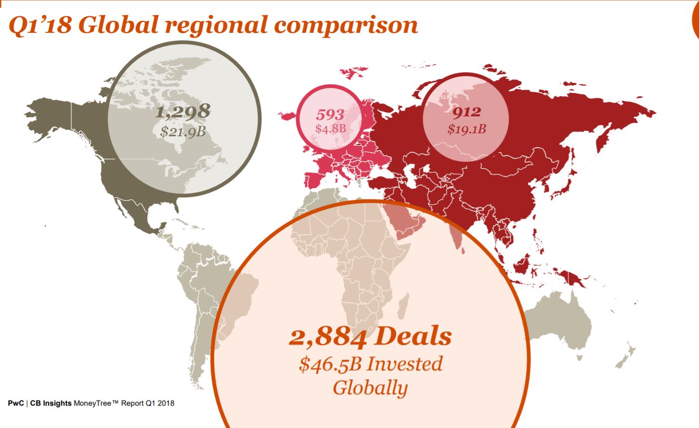 Astfel, potrivit acestui traport, valoarea totală a investițiilor realizate de fondurile de venture capital în primul trimestru din 2018 a ajuns la 46,5 miliarde de dolari, chiar dacă numărul tranzacțiilor a fost mai mic cu 4% comparativ cu perioada similară a anului trecut. Această sumă a fost investită în 2.884 de tranzacții.