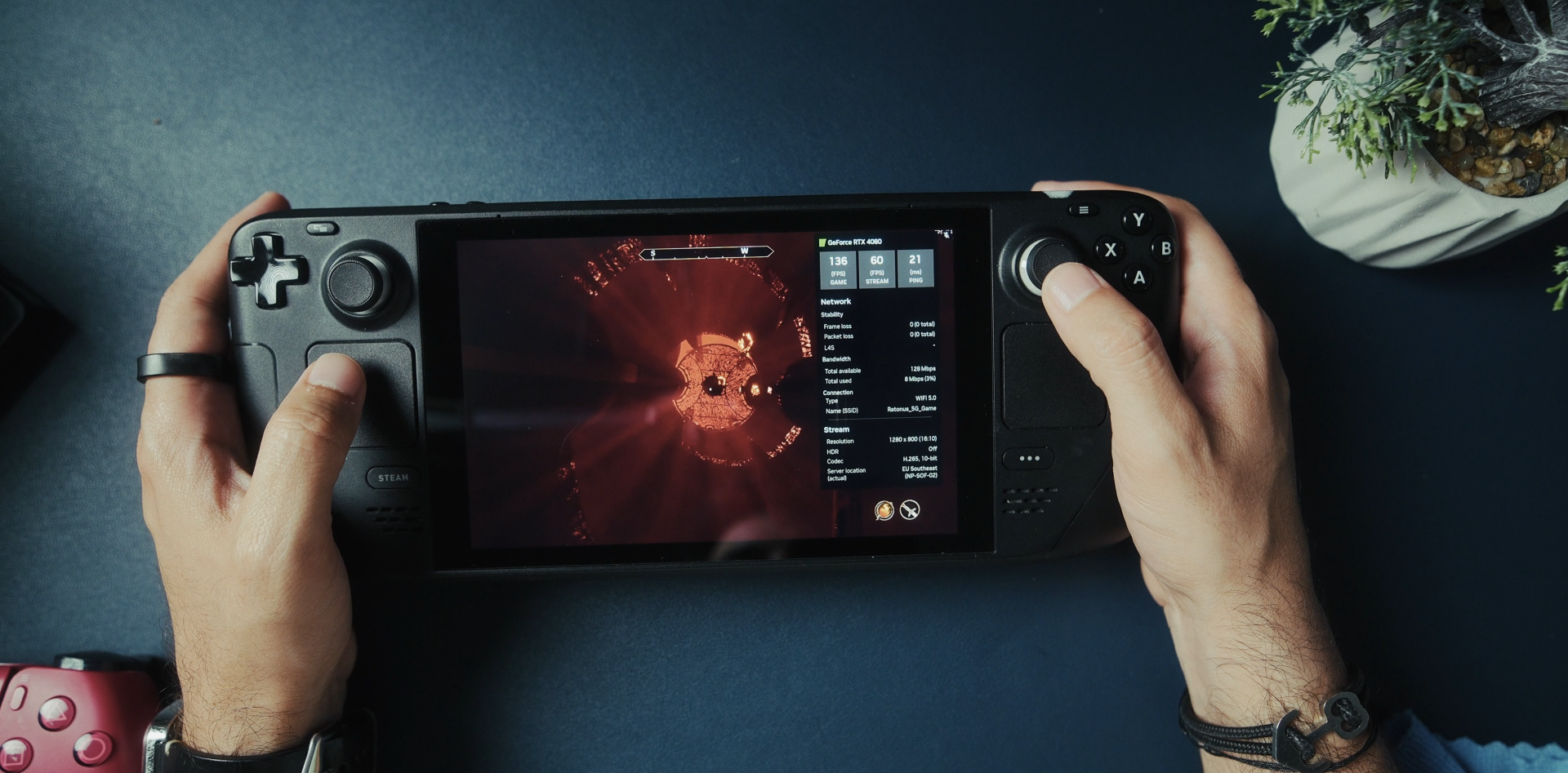 Până acum foloseam Steam Deck în principal pentru a juca jocuri indie și mai simple, însă de când testez GeForce NOW îmi dau seama că ar putea fi folosit și ca o extindere a PC-ului de acasă care este dotat cu RTX 5080. Cu PC-ul pornit și în fața monitorului 4K OLED e metoda mea preferată de gaming, dar în ultimii ani, mai ales de când am devenit părinte, am din ce în ce mai puțin timp pentru sesiuni neîntrerupte de gaming. Așa că Steam Deck-ul prin cloud gaming mi-a permis să mă joc în reprize scurte jocuri pe care le-aș fi jucat doar pe desktop PC-ul.