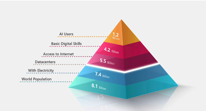 • Aproximativ patru miliarde de oameni—jumătate din populația lumii—încă nu dispun de elementele de bază necesare pentru a utiliza AI.