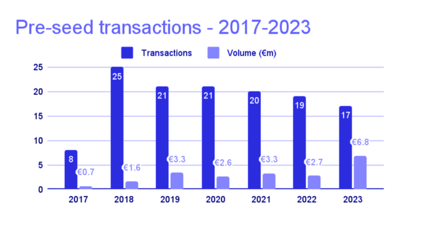 În ultimii 6 ani, numărul de tranzacții pre-seed s-a menținut constant, singurul pas cu adevărat mare fiind făcut între 2017 și 2018, când numărul lor s-a triplat, de la 8 la 25.