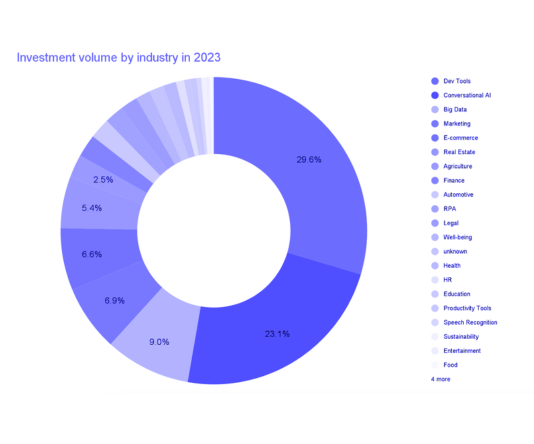Ca domenii de activitate care au atras atenția investitorilor, pe lista ”premianților” din România se numără startup-uri din dev tools (cu 38,4 milioane euro atrase), AI conversațional (30 mil. euro), big data (11, 7 mil. euro), marketing (9 mil. euro), ecommerce (8,5 mil. euro), imobiliare (7 mil. euro).