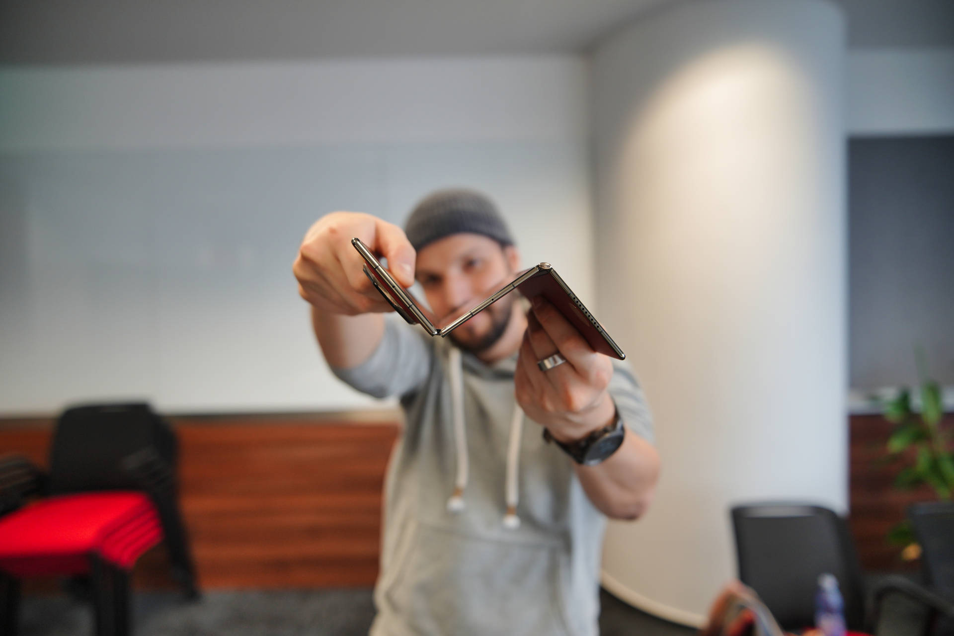 Se simte ca un telefon rezistent, dar nu poți sesiza porțiunea de ecran expusă pe marginea exterioară când telefonul este pliat care reprezintă un punct vulnerabil în caz de impact, dar și în utilizarea zilnică, mai ales dacă vrei să-l folosești ca pe post de suport.