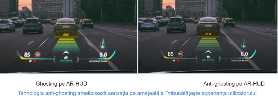 Huawei AR-HUD este compact (doar 10 litri în volum) și are un FOV mare. Raportul său FOV-volum ridicat îi permite să se adapteze la mai multe modele de vehicule. Un HUD tradițional suferă de obicei de ghosting și cauzează amețeli. Pentru a rezolva această problemă, Huawei folosește un design unic al căilor optice și tehnologii algoritmice pentru a îmbunătăți definiția și a elimina amețelile cauzate de ghosting, îmbunătățind semnificativ experiența utilizatorului.