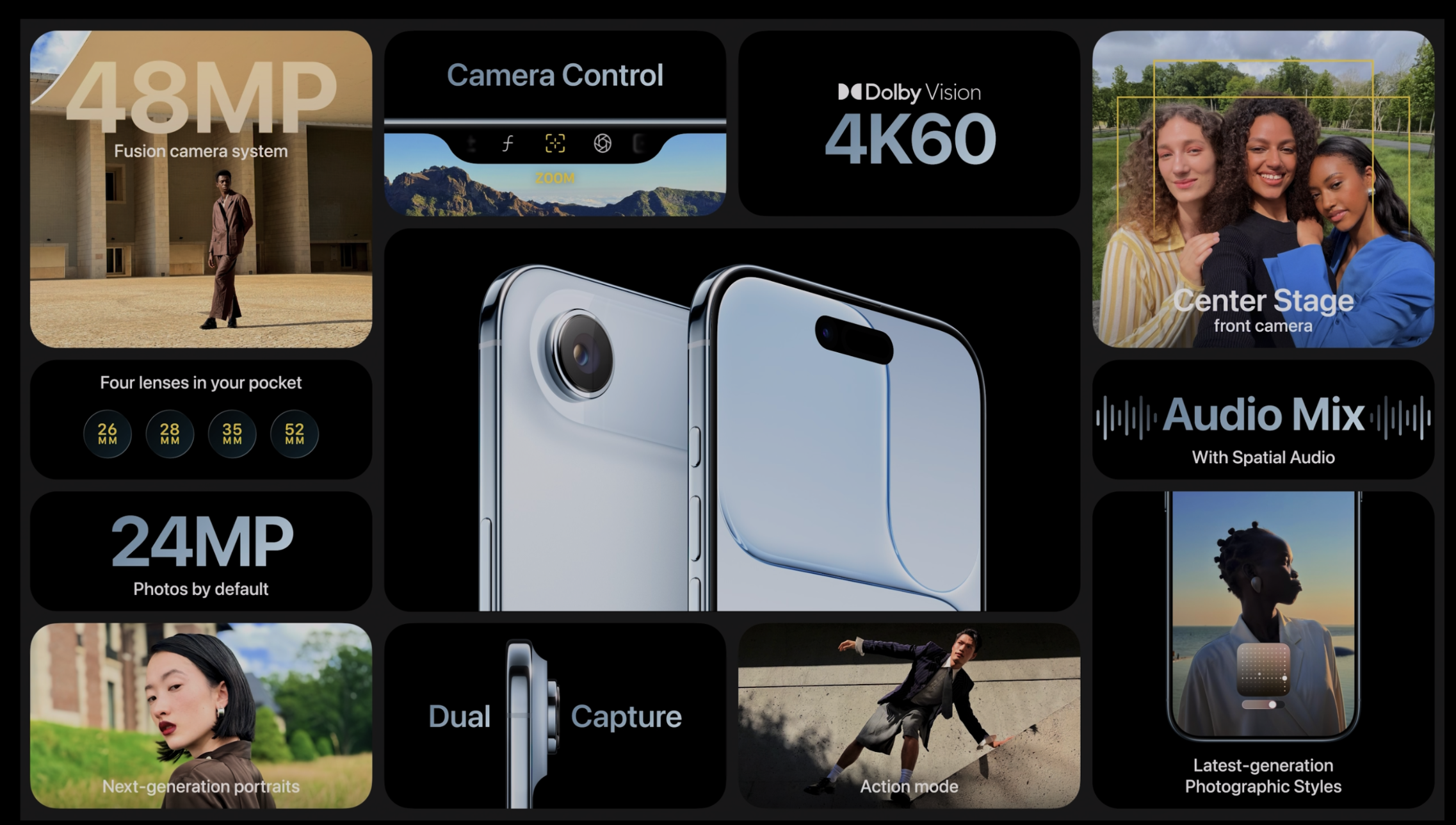 Noua cameră de 48 de megapixeli combină camera principală cu una telefoto, similar cu iPhone 15 și iPhone 16, și oferă fotografii de 24 de megapixeli pentru poxele 1X.