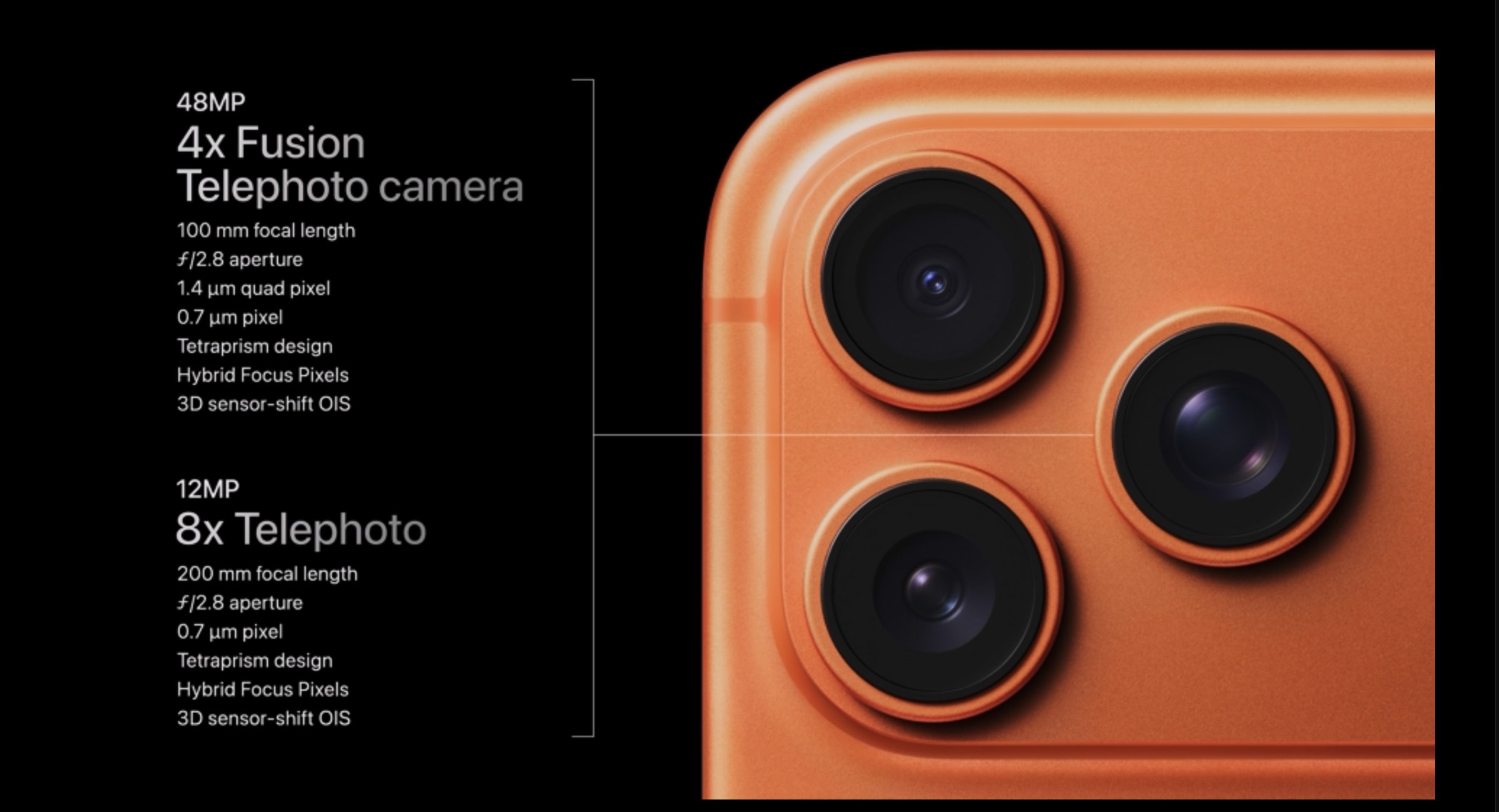 De asemenea, aceasta permite realizarea fotografiilor la zoom optic 4x. Telefonul poate face fotografii macro, ultrawide și zoom.