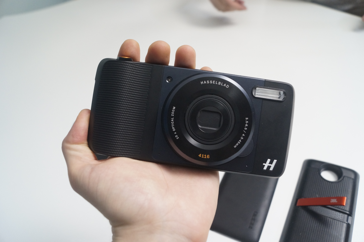 Aceste Moto Mods sunt, de fapt, trăsăturile definitorii ale acestui terminal. Sunt ca un fel de carcase modulare care se aplică direct, prin intermediul unor magneți și pini, pe spatele telefonului. Până acum sunt pe piață patru moduri disponibile: unul de cameră foto, un proiector, o baterie externă și o boxă externă. Despre ele vorbim puțin mai jos.