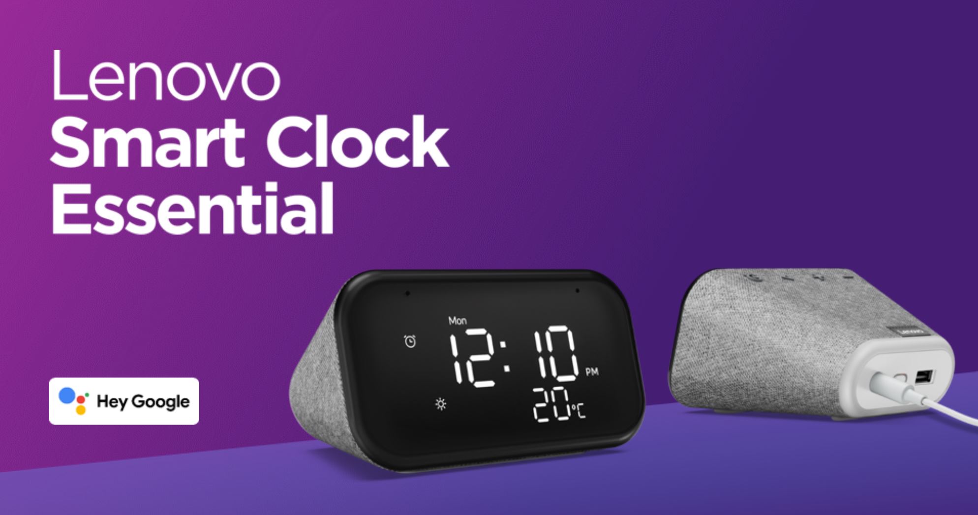 Lenovo Smart Clock Essential este un ceas de masă inteligent, gândit pentru orice încăpere a locuinței tale smart. Este un dispozitiv prin care poți controla vocal orice device conectat din casă, un difuzor integrat cu Google Assistant și cu un display care afișează mereu ora și temperatura.