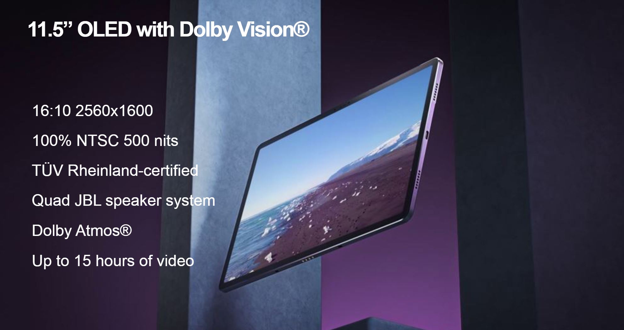 Aceasta are un ecran OLED de 11,5 inch cu rezoluție 2560x1600 și promite o autonomie de 15 ore la redarea de conținut video. E genul de tabletă pe care poți urmări toată trilogia Lord of The Rings în versiunea extended și încă un film la alegere.
