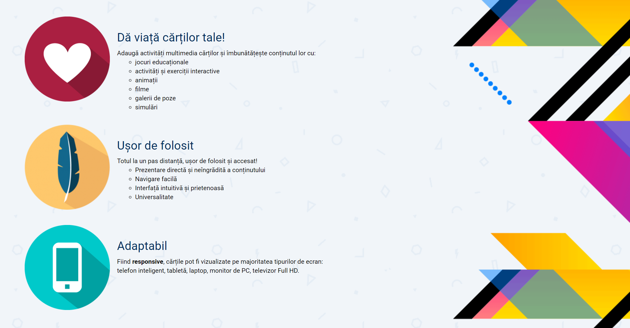 Livresq este o platformă online pe care editurile o pot folosi pentru a digitaliza rapid, accesibil și fără cunoștințe de programare orice manual, orice carte, orice fel de conținut. Este o platformă și pentru profesorii care vor să le prezinte elevilor și studenților informații suplimentare într-un format interactiv, prietenos și intuitiv pentru generațiile născute cu smartphone-ul în mână.