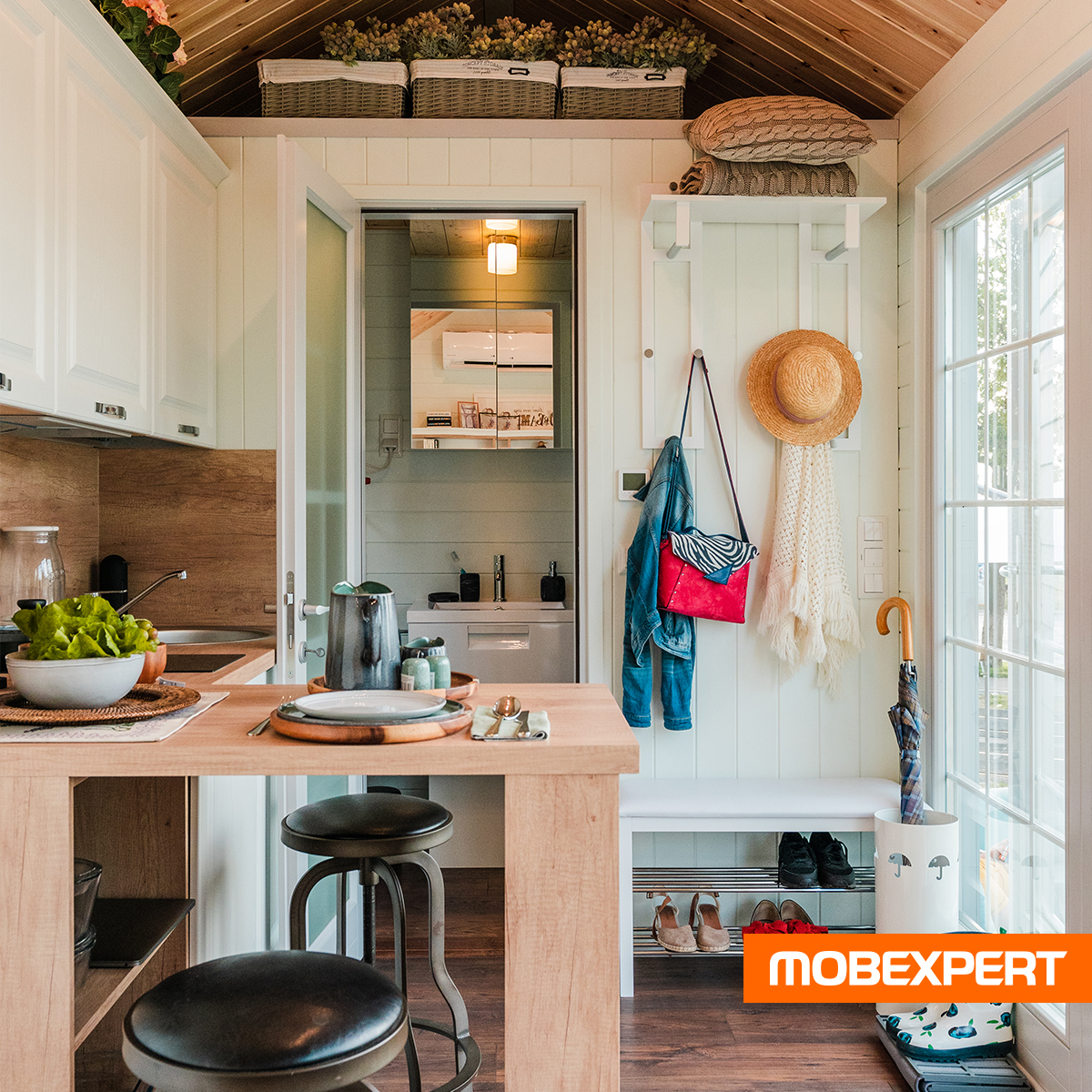 O „tiny house” este o căsuță de mici dimensiuni, astfel că poate fi amplasată în orice spațiu pentru a fi folosită ca locuință permanentă sau casă de vacanță, și nu numai: poate deveni o anexă pentru oaspeți, biroul tău din natură, o zonă de relaxare, un spațiu dedicat evenimentelor sau chiar unul de închiriat în regim hotelier. Căsuțele Mobexpert au fost proiectate de partenerii fabricanți de la Piatra Neamț și Miercurea-Ciuc, iar mobilierul a fost realizat în fabricile Mobexpert din Târgu Mureș.