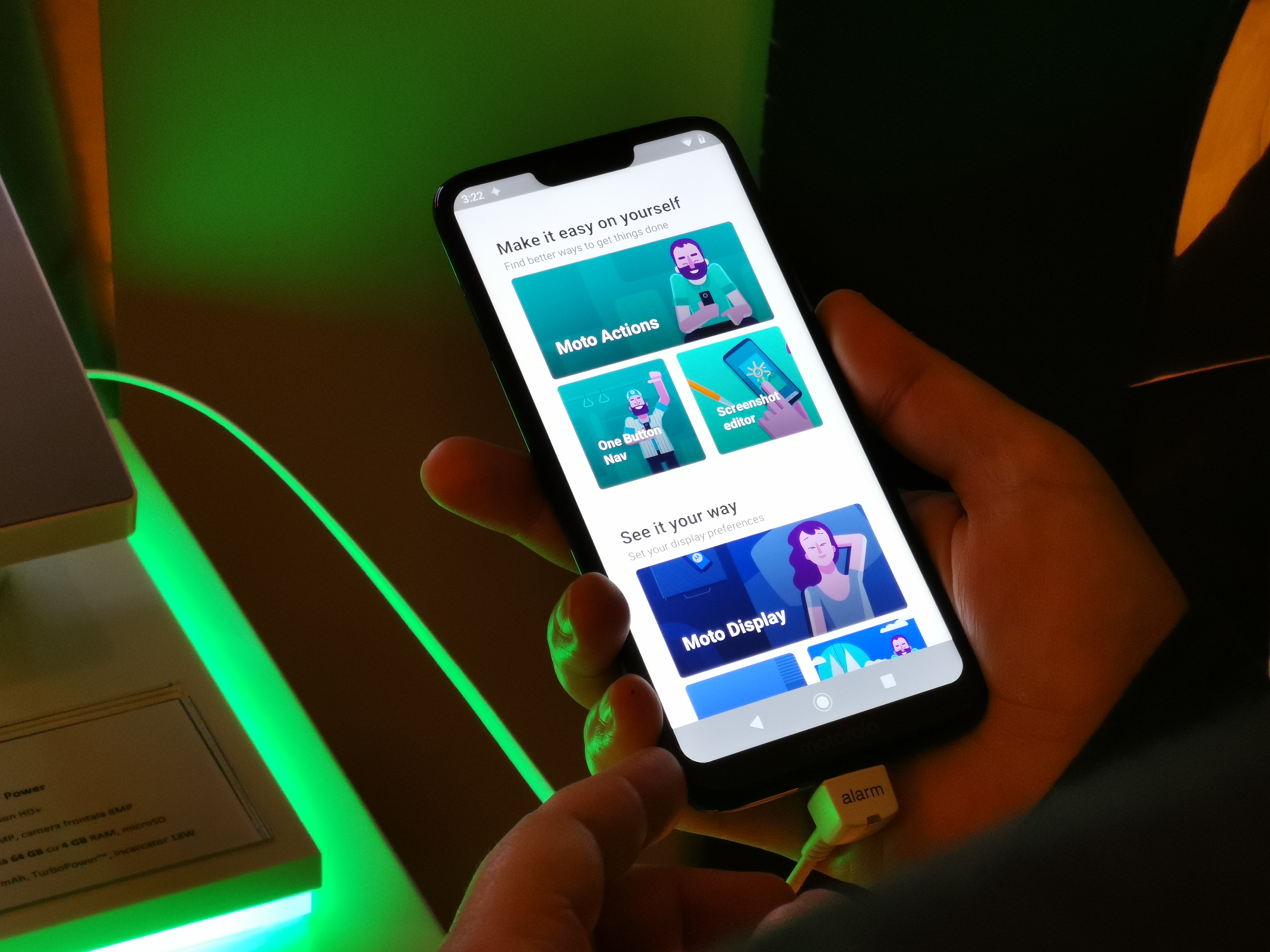 Ecranul este de 6,2 inch și vine cu un notch mai mare, dar performanțele smartphone-ului sunt similare cu cele ale G7 Plus, având în vedere că și acest model este dotat cu 4GB memorie RAM, iar procesorul este un Snapdragon 632.