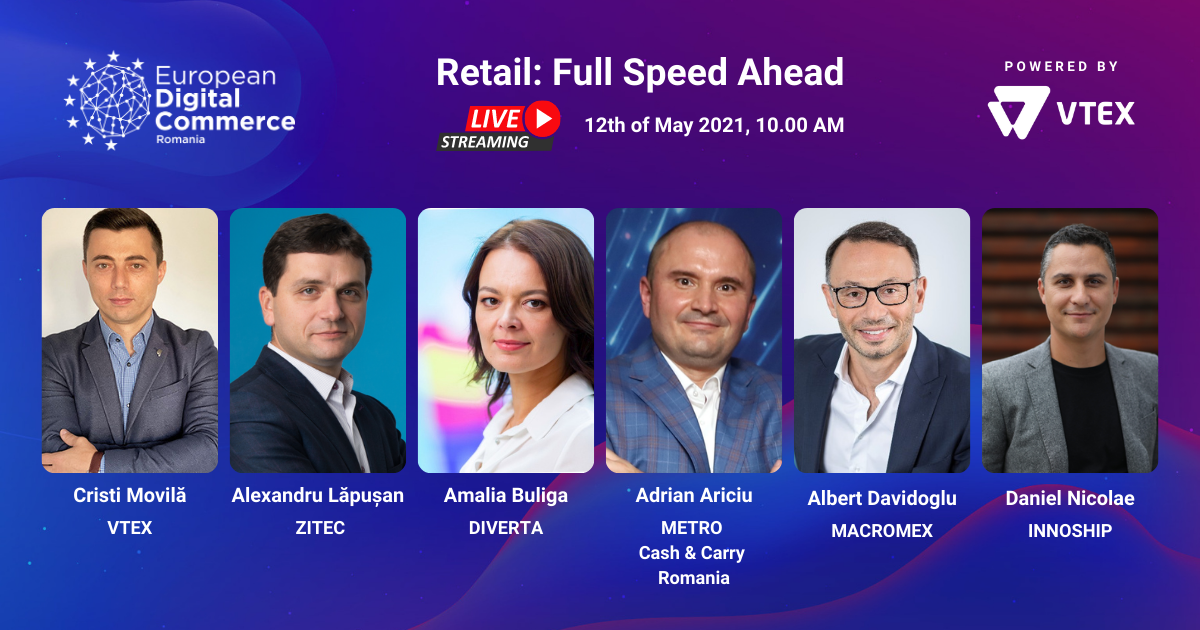 Discuții aprinse despre provocările omnichannel-ului la un an de la izbucnirea COVID-19, direcții clare privind adaptarea la noile realități și sfaturi privind conturarea unei strategii care să te ajute să îți dezvolți afacerea sunt doar câteva aspecte ce descriu atmosfera de pe scena virtuală a evenimentului European Digital Commerce, powered by VTEX, unde veți întâlni speakeri precum: