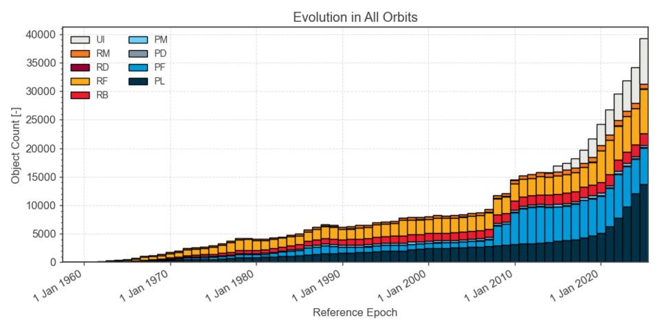 Raportul ESA privind mediul spațial arată o accelerare a numărului de obiecte urmărite pe orbita Pământului în timp: