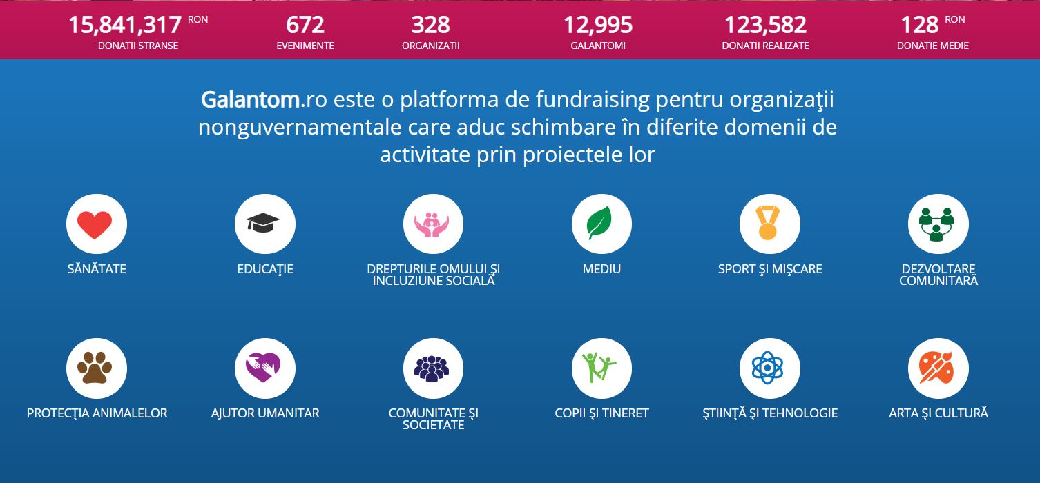 ”În 2013, ne-am întâlnit în cadrul unui eveniment sportiv, Transmaraton, unde eu dezvoltasem prototipul pentru ce este acum Galantom pentru participanții de la acel eveniment. Pentru că la acel moment, fundraising-ul peer-2-peer încă se făcea offline, am simțit că putem dezvolta instrumentul de la Transmaraton pentru a ajuta și promova acest mod de fundraising în România. Așa a apărut platforma www.galantom.ro”, explică Gabriel.