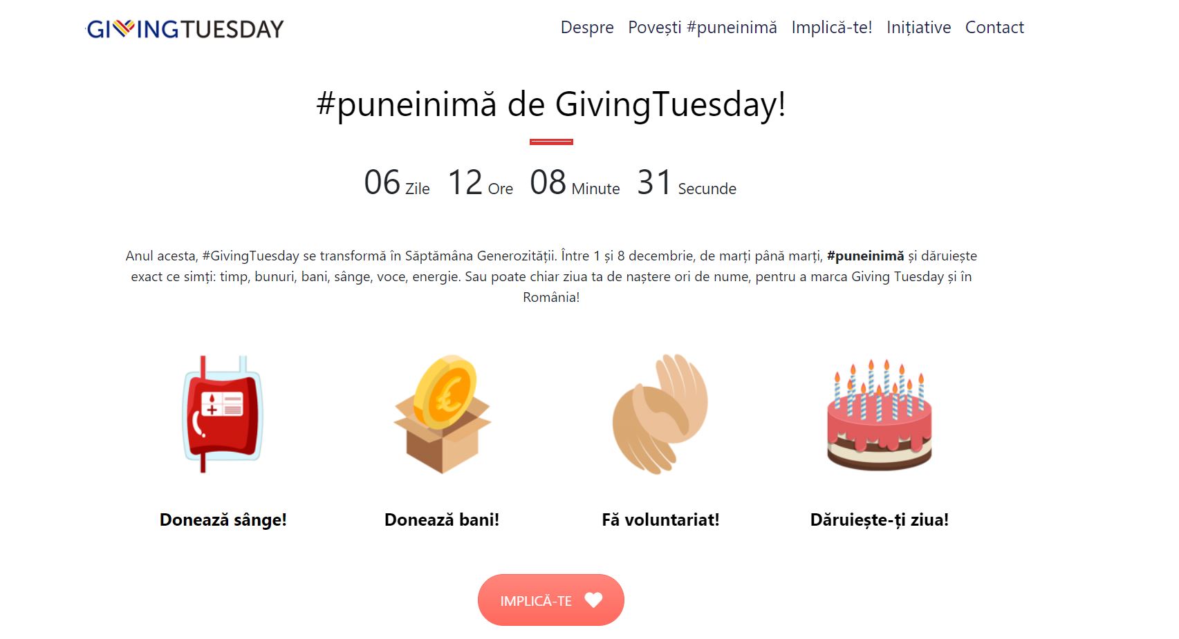 Cât despre GivingTuesday, mișcarea a crescut de la un an la altul, și dacă în 2017 au avut doar un vizual de campanie, 2-3 apariții media și inițiative mai mici, anul trecut echipa a primit ajutor din partea a 9 ambasadori, persoane cunoscute și apreciate la nivel național sau în comunități locale puternice, o vizibilitate considerabilă în social media și 85 de inițiative înscrise pe site.