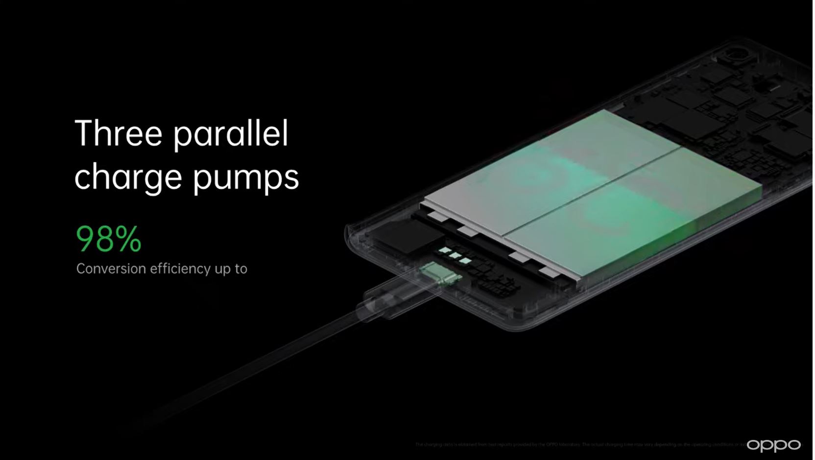 Conform celor de la Oppo, încărcătorul reușește să fie mai puternic inclusiv decât unele de pe laptopuri. În 3 minute, încărcătorul aduce 33% baterie. În 5 minute, încărcătorul aduce 41% baterie, iar 100% în doar 20 de minute. Oppo promite temperaturi de sub 40 de grade Celsius în timpul încărcării.