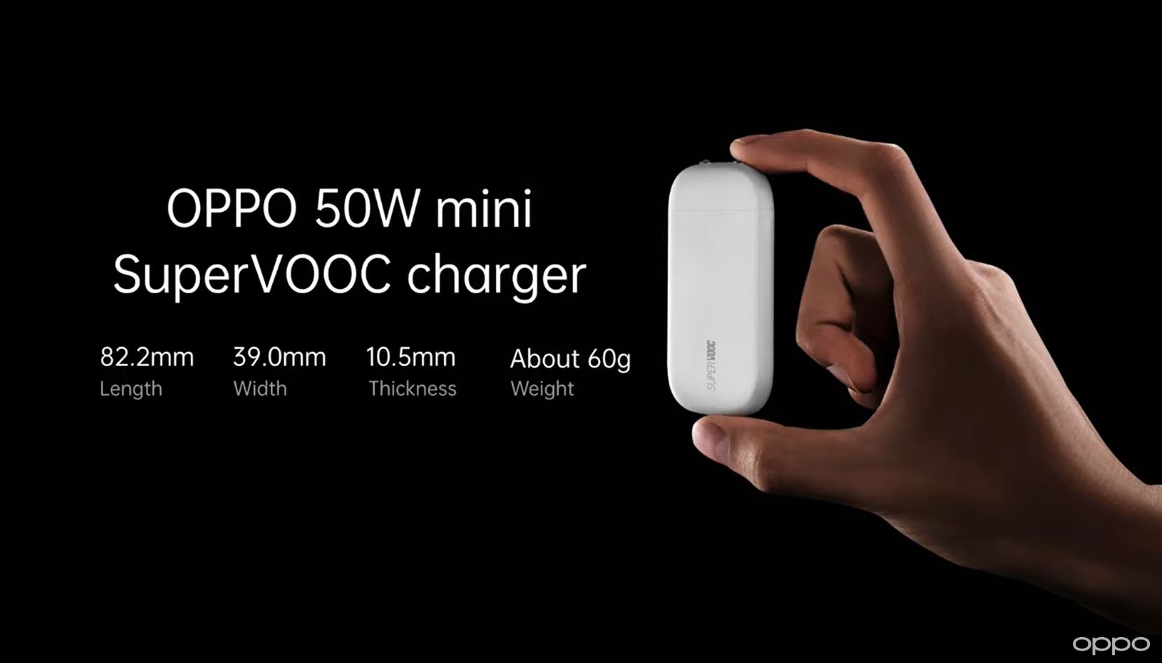 Oppo a anunțat și un încărcător miniaturizat de 50 de wați, care are doar 60 de grame și arată ca un stick. Conform companiei chineze, are cea mai mică dimensiune permisă de către lege.